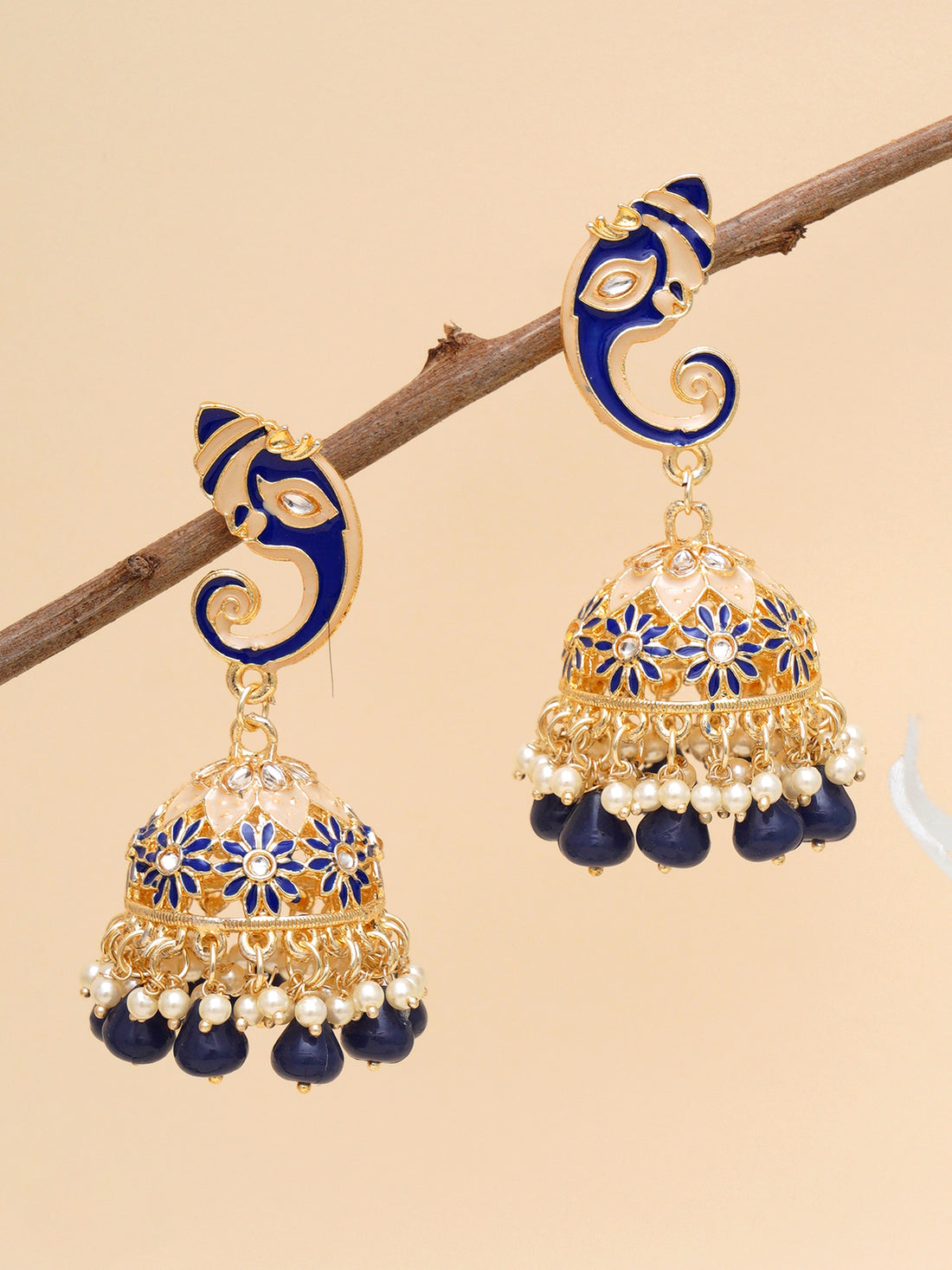Karatcart Gold Plated Blue Lord Ganesha Jhumki Earrings for Women
