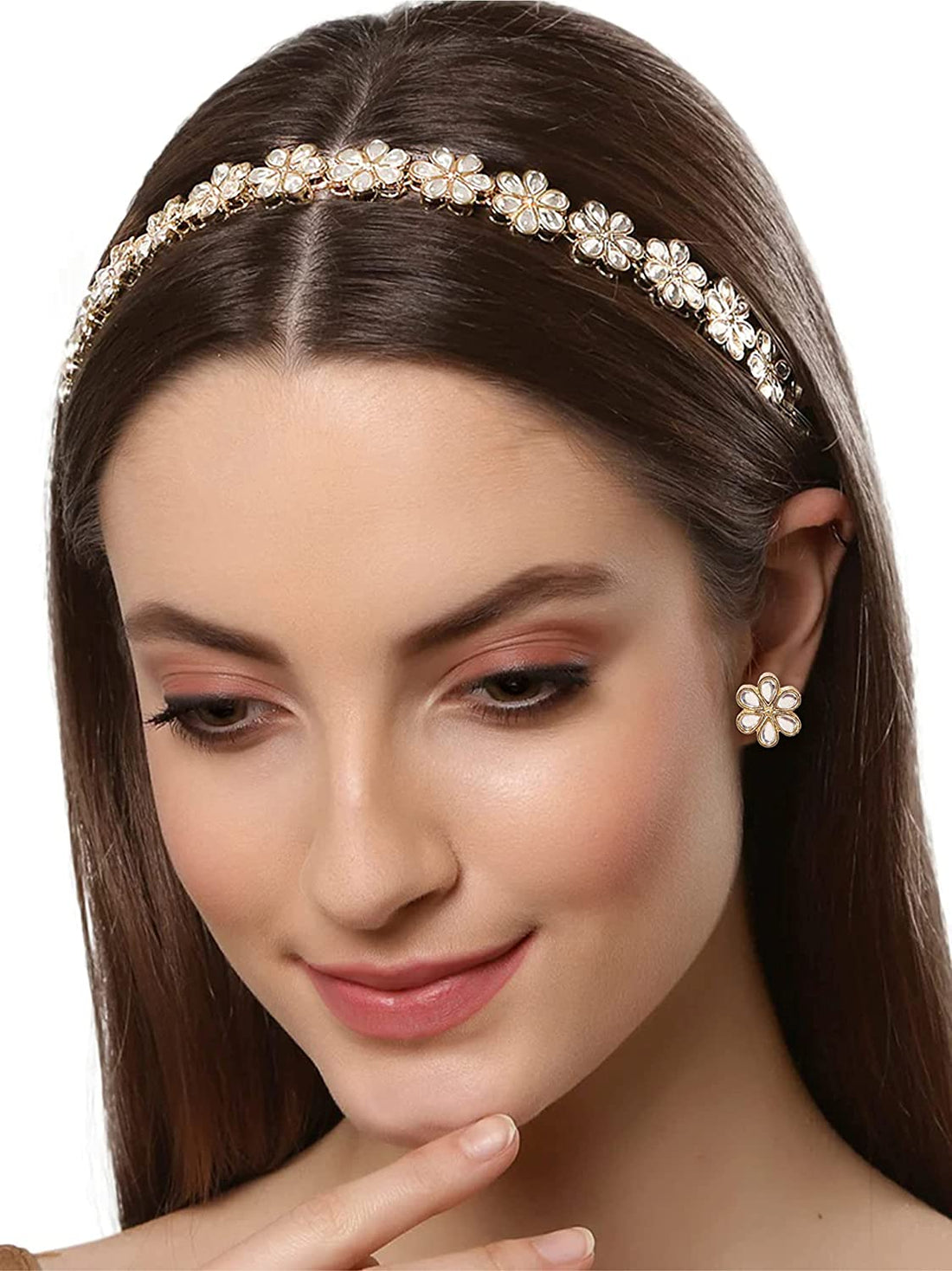 Karatcart Floral Shape Kundan Studded Hairband with Earrings Combo for Women. Our products are designed...