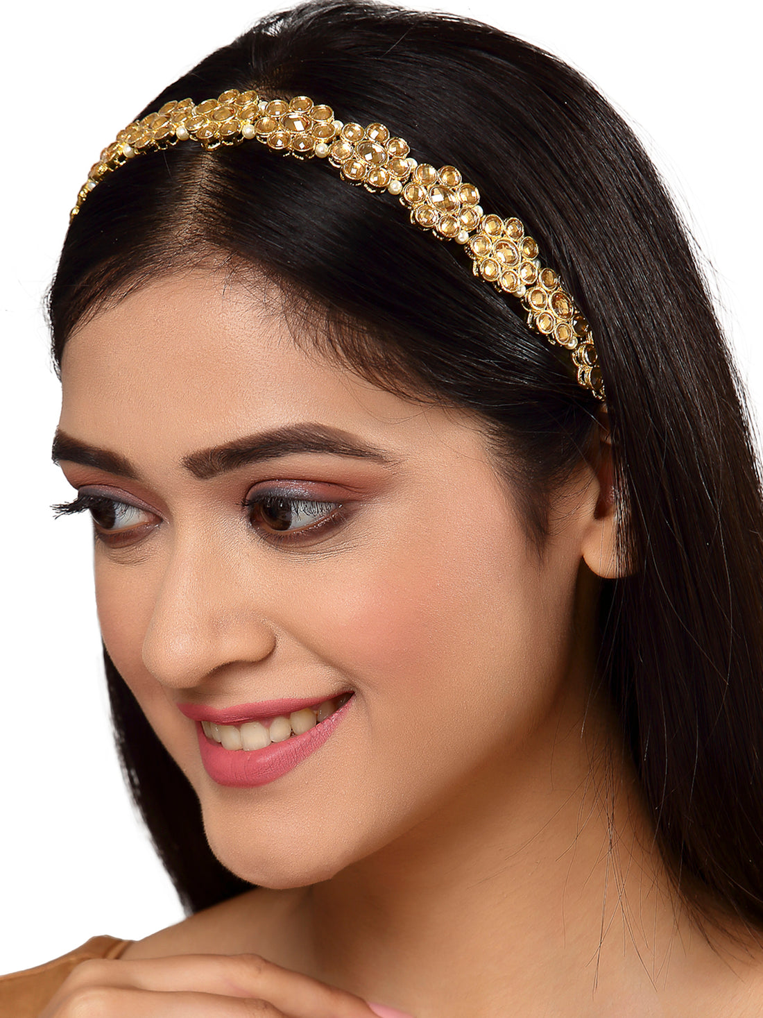 Karatcart Ethnic Golden Kundan Embellished Hairband