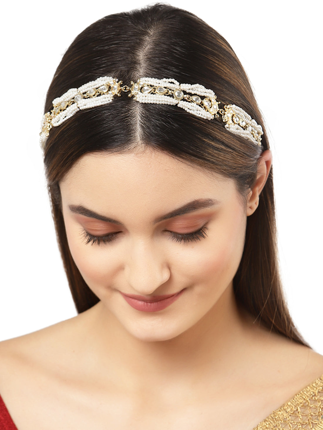 Karatcart Gold Plated Embellished Pearl Studded Kundan Hairband for Women