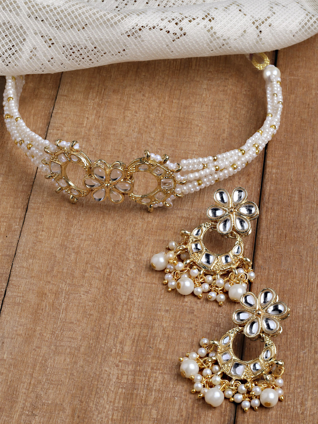 Karatcart Gold Plated Embellished Pearl Kundan Choker Necklace Setfor Women