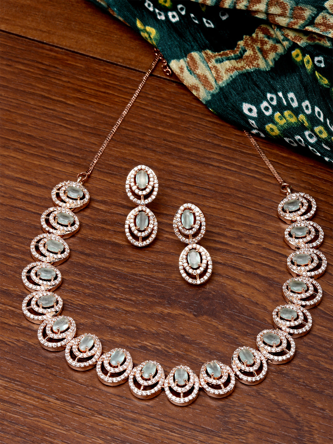 Karatcart Rose Gold Plated Light Green Cubic Zirconia Studded Necklace Set