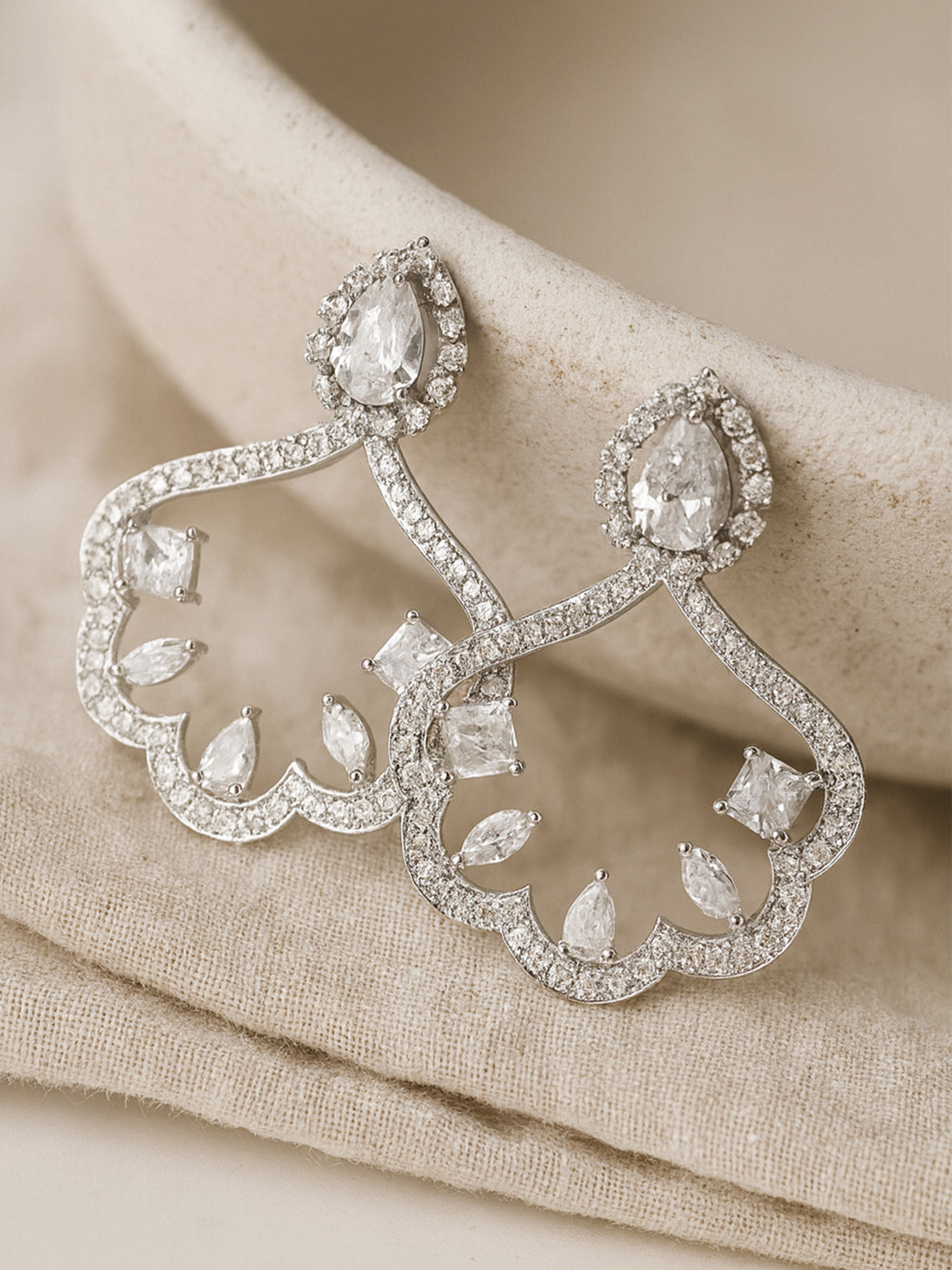 Karatcart Silver Plated Cubic Zirconia Drop Earrings for Women