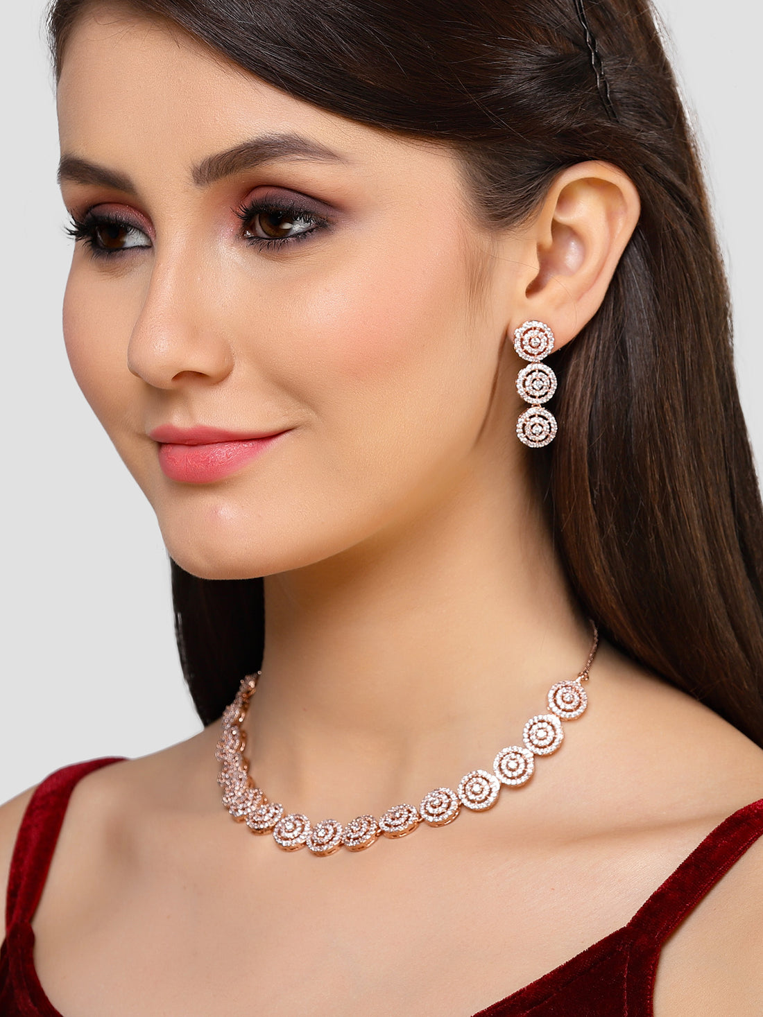 Karatcart Rose Gold Plated Round Design CZ Stone Studded Jewellery Set