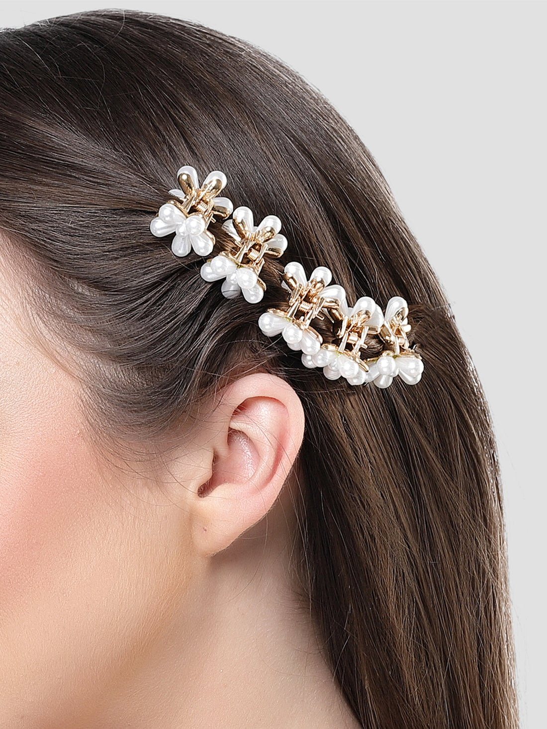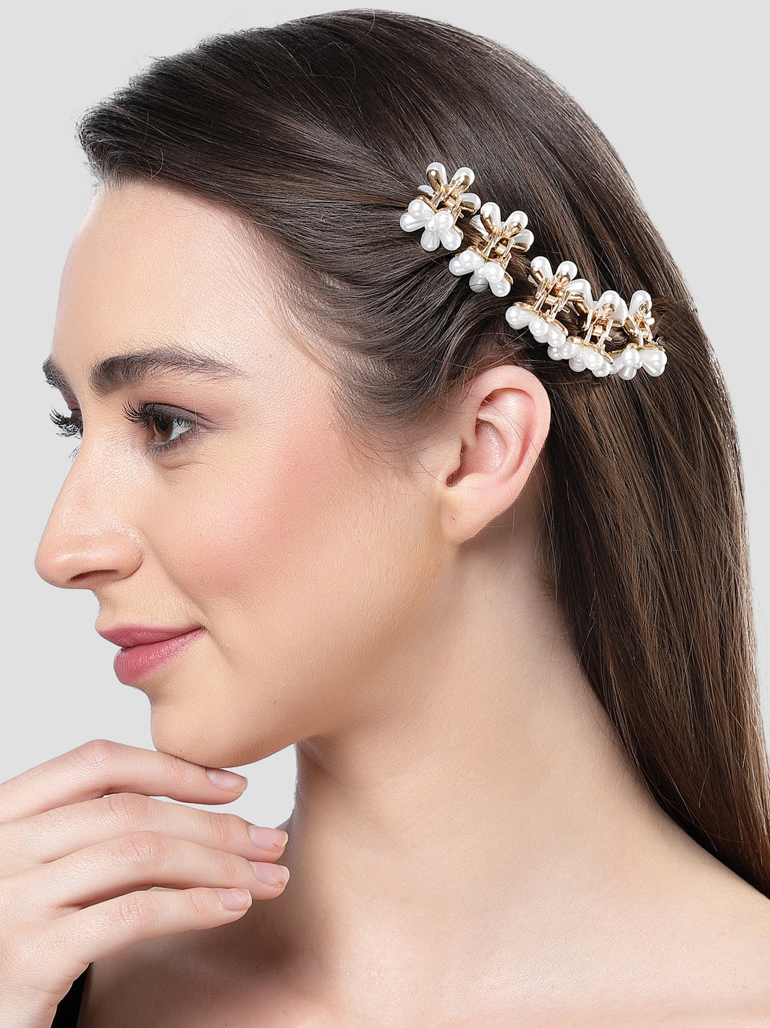 Bohey by KARATCART Set of 4 Pearl Beaded Hair Clips for Women