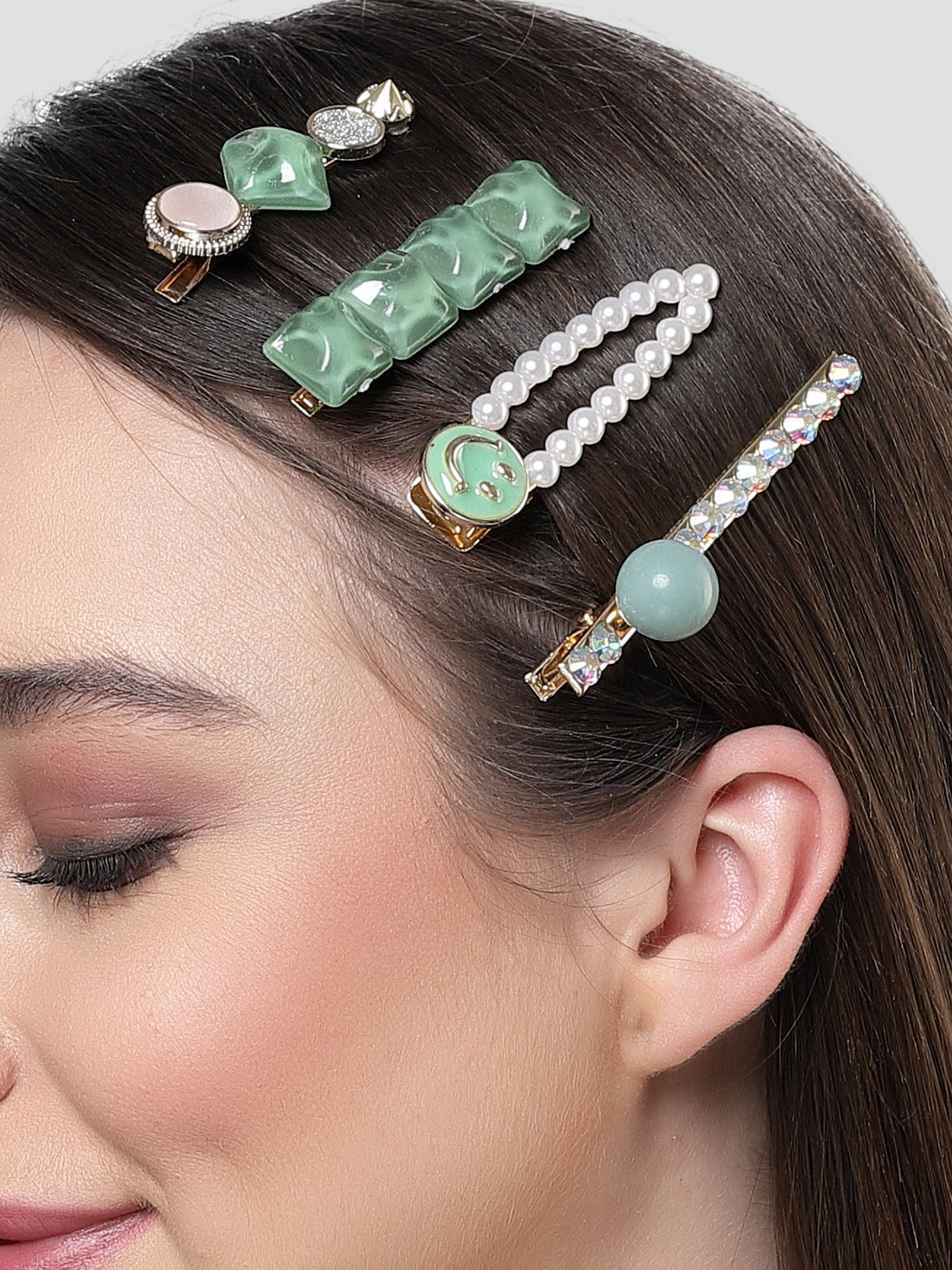 KARATCART Set of 6 Green Hair Clips for Women. Our products are designed with high-quality...