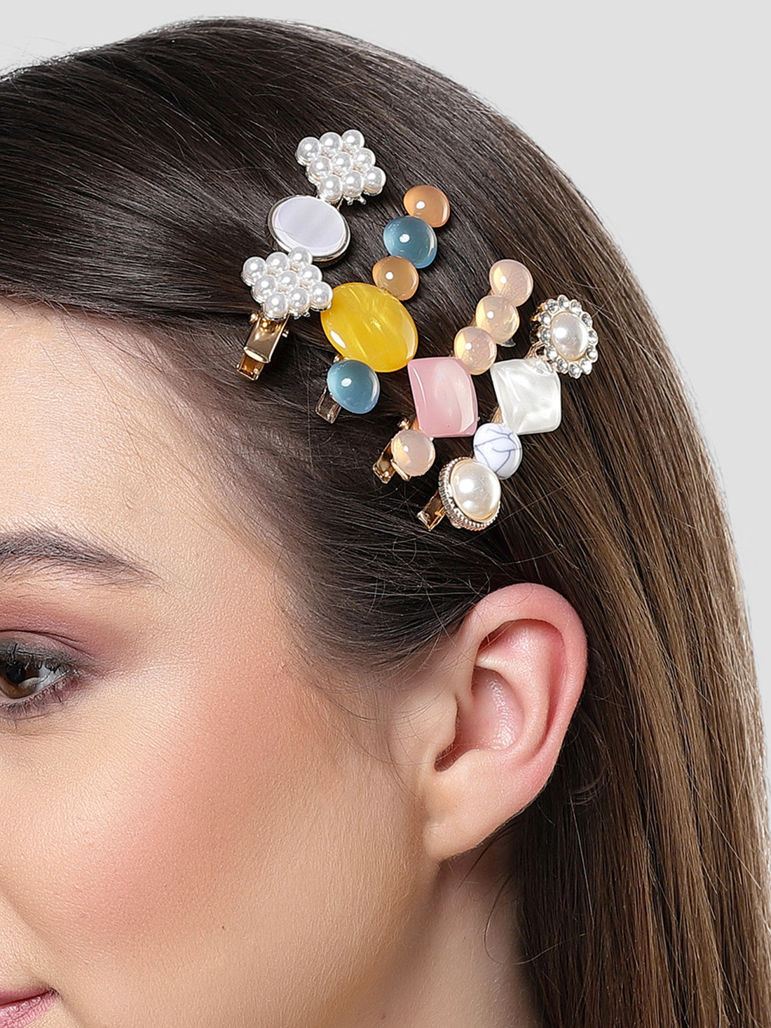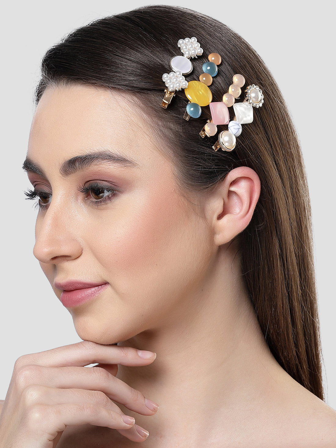 Bohey by KARATCART Set of 6 Multicolor Embellished Hair Clips for Women