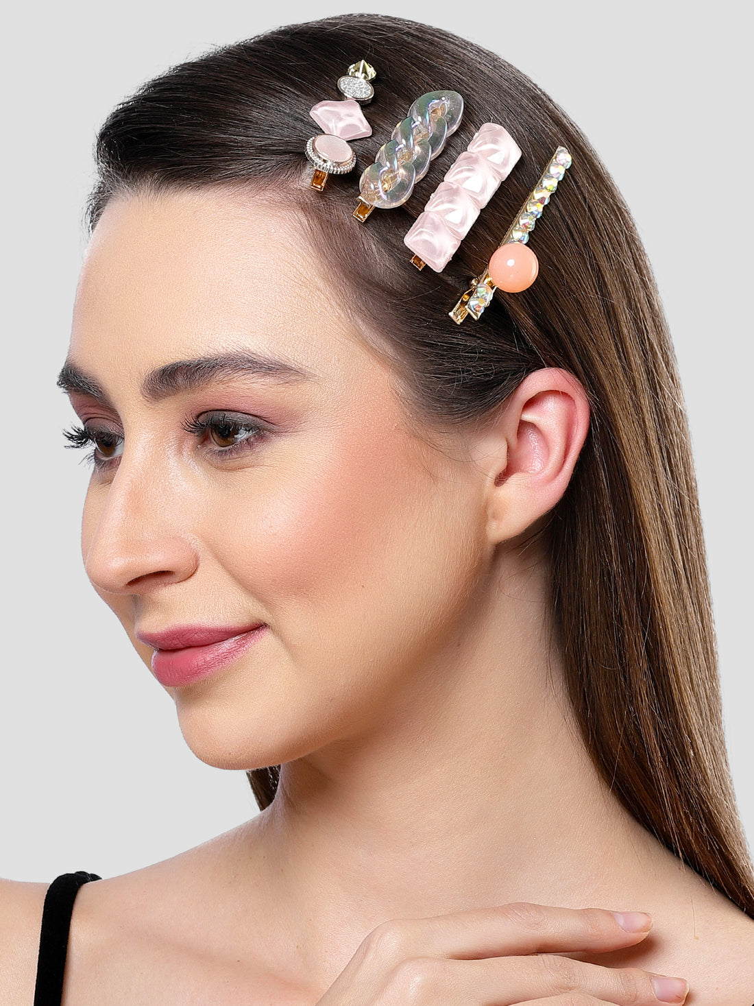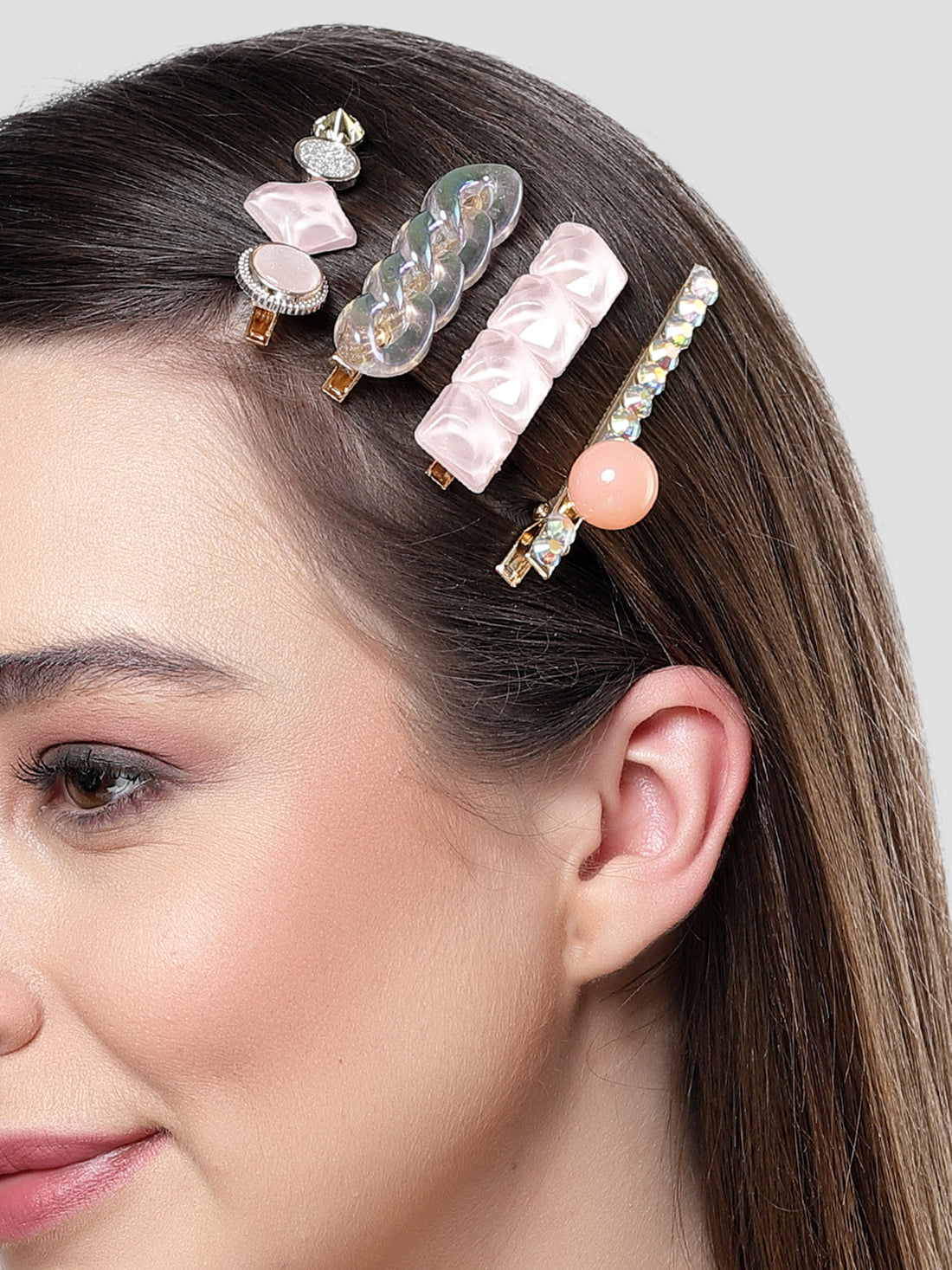 Bohey by KARATCART Set of 6 Pink Hair Clips for Women