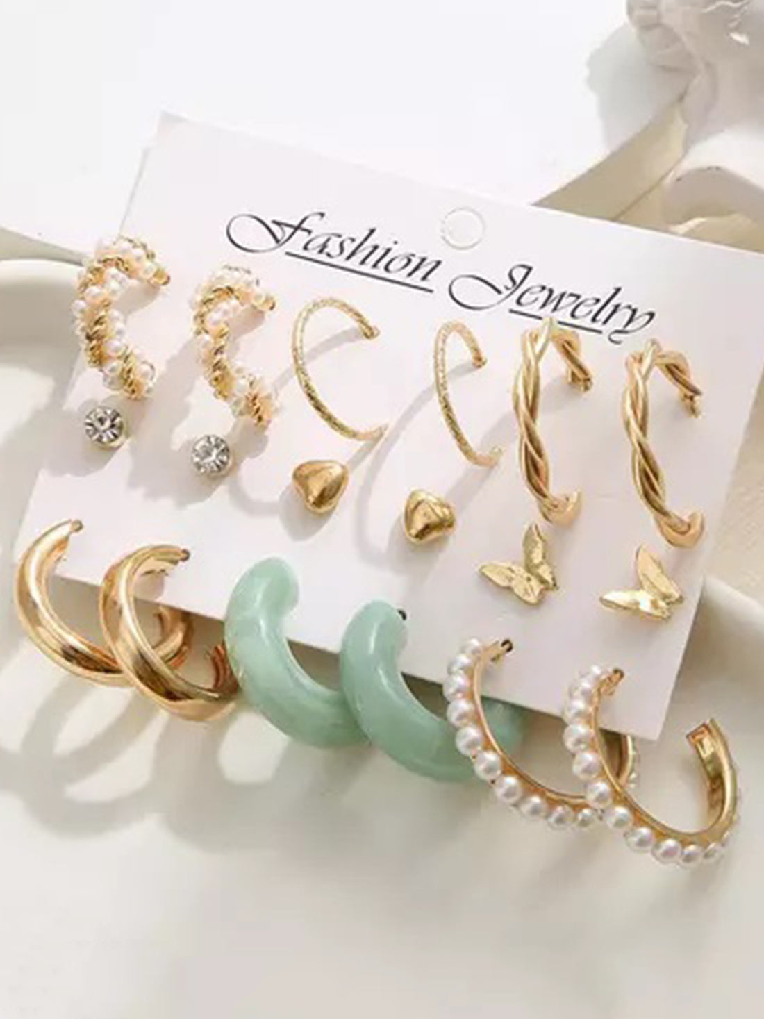 Bohey by KARATCART Set of 9 Pairs Gold Plated Fashion Hoop and Stud Earrings Set for Women