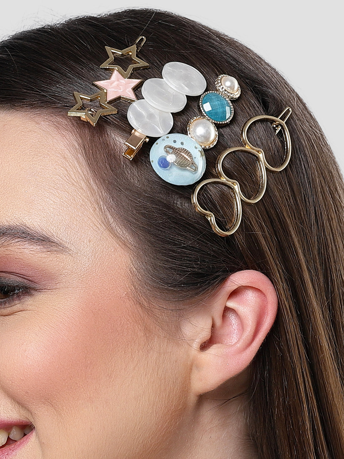 Bohey by KARATCART Set of 7 Ocean Theme Hair Clips for Women
