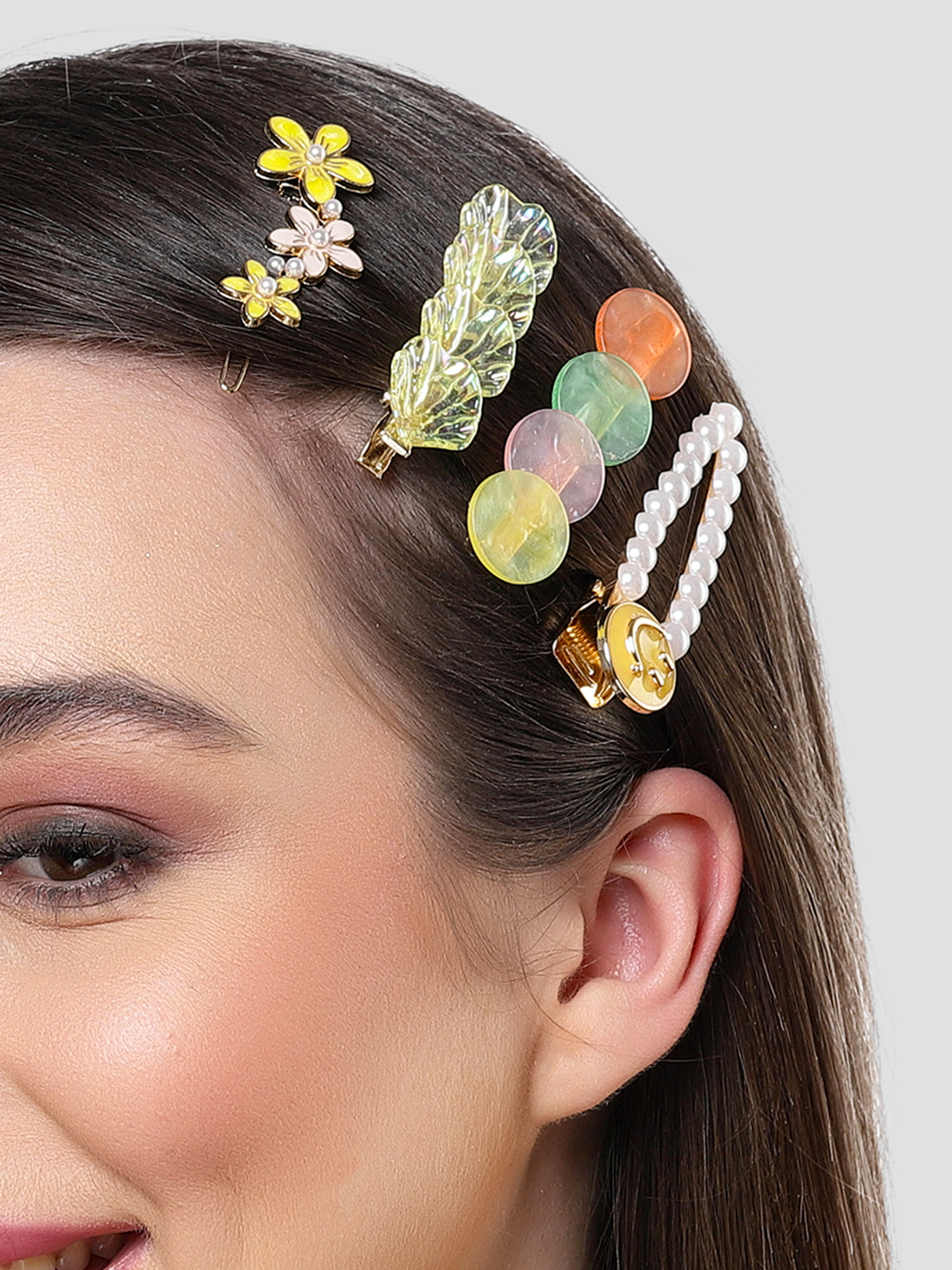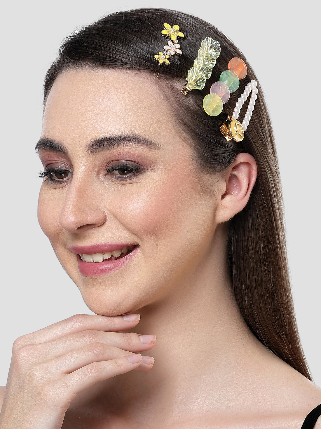 Bohey by KARATCART Set of 6 Yellow Hair Clips for Women