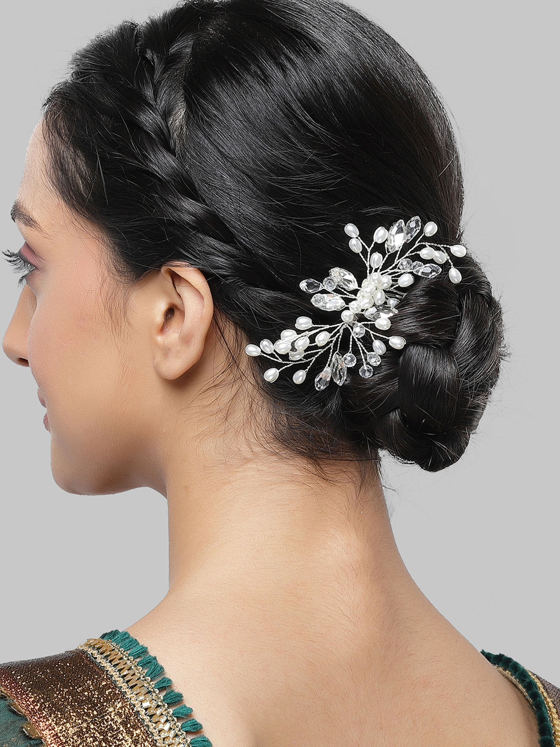 Karatcart Silver Plated Pearl and White Crystal Hair Clip for Women. Our products are designed...