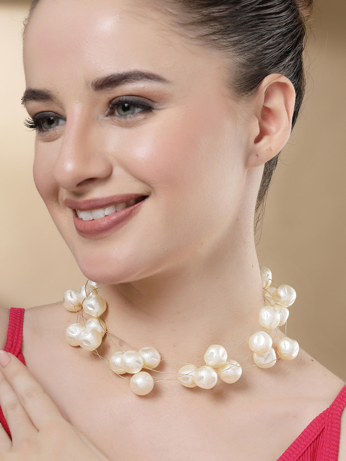 Bohey by KARATCART Gold Plated Multilayer Round Baroque Pearl Chain Necklace for Women