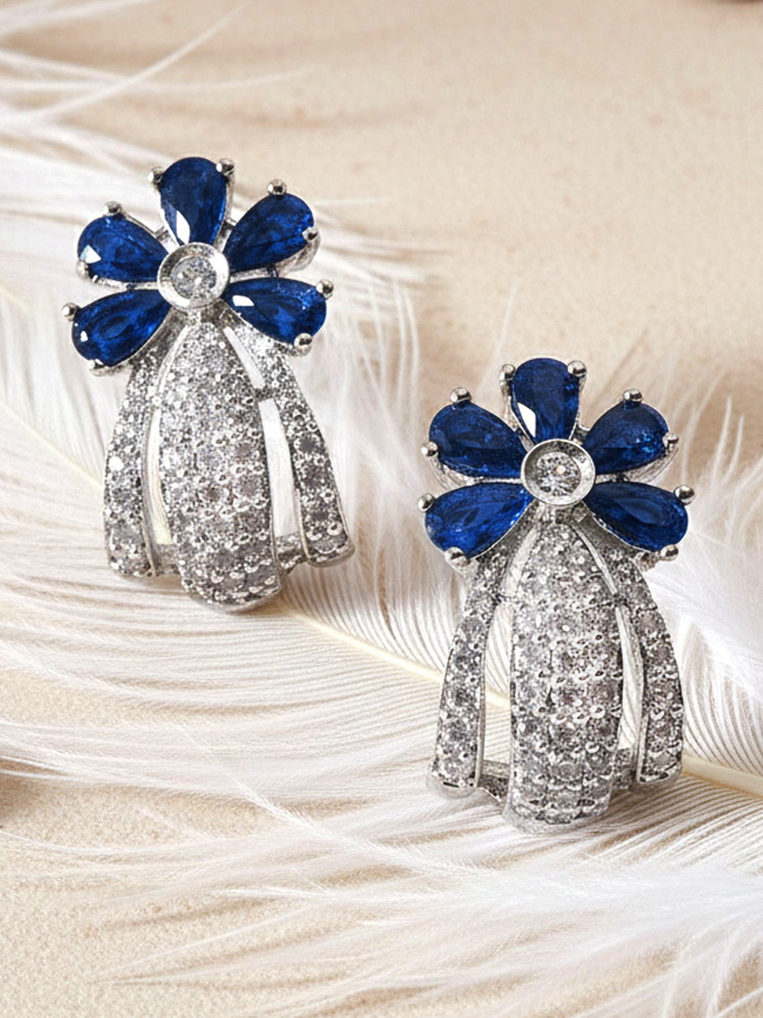 Karatcart Elegant Floral Design Blue American Diamond Stud Earrings for Women