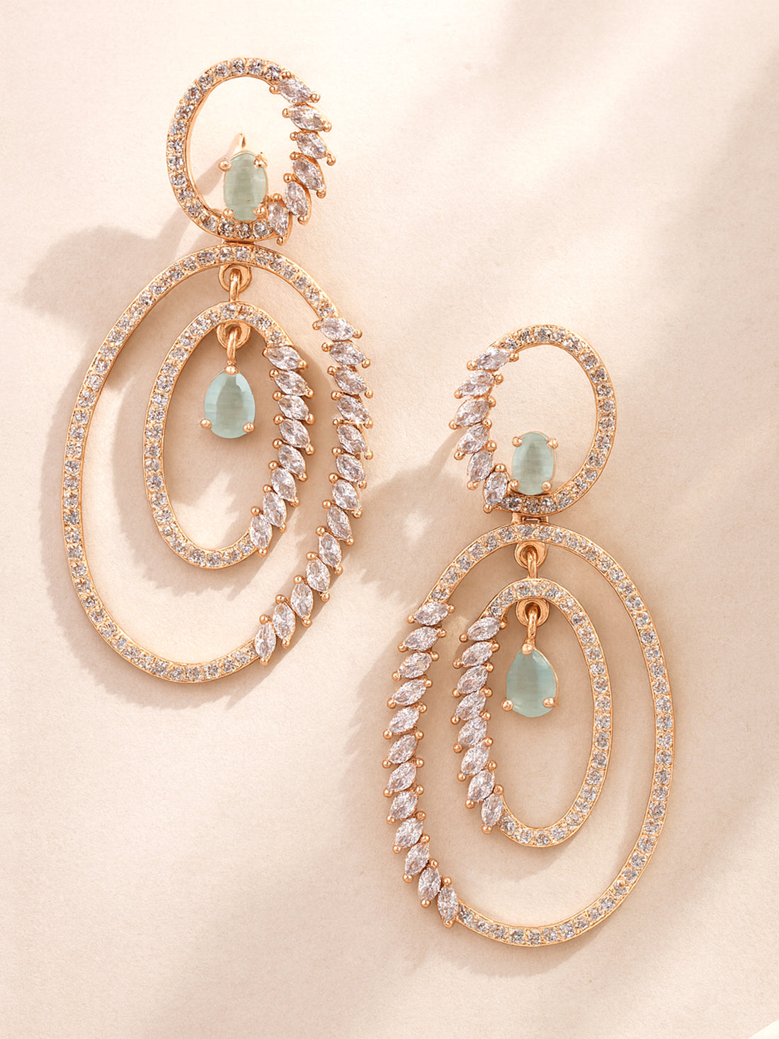 Karatcart Rose Gold Plated Green Cubic Zirconia Studded Dangler Earrings for Women