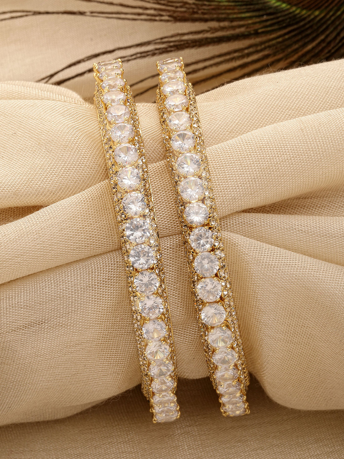 Karatcart Set of 2 Gold Plated Round American Diamond Studded Bangles for Women