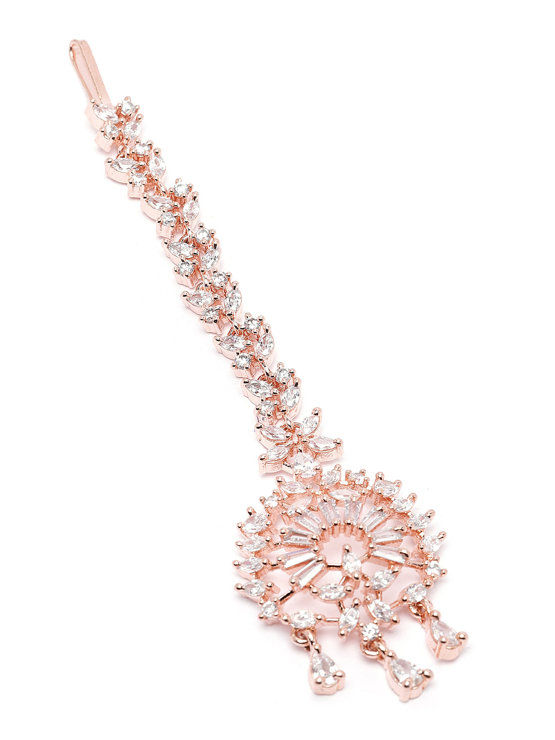 Karatcart Rose Gold Plated AD Maangtikka for Women