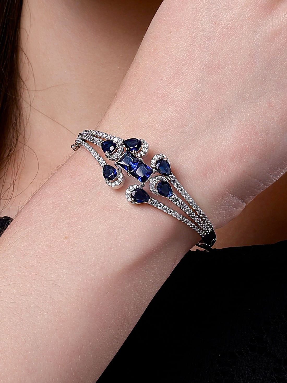 Karatcart Blue Cubic Zirconia Silver Tone Beacelet for Women
