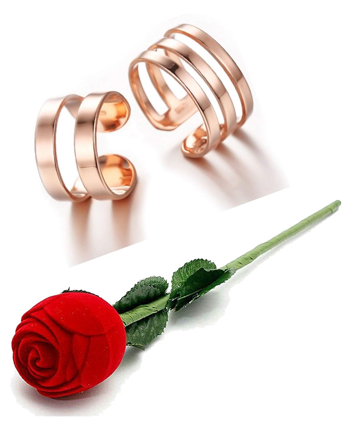 Valentine Gift by Karatcart 24K Rose GoldPlated Elegant Parallel Shanks Couple Adjustable Band Ring