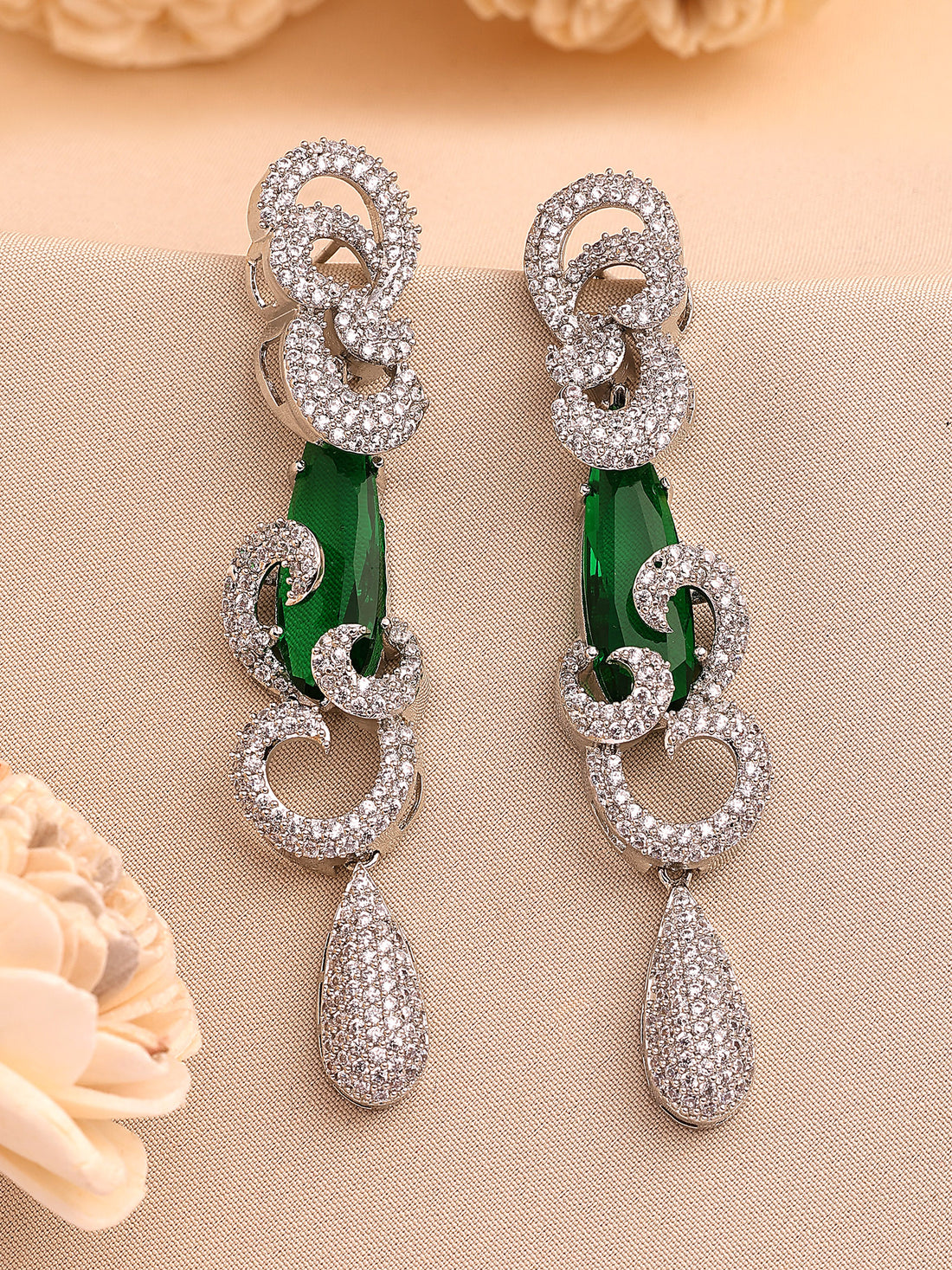 KARATCART Designer Green Teardrop American Diamond Silver-Plated Drop Earrings for Women