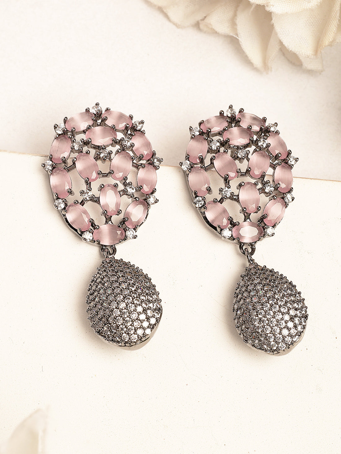 Karatcart Elegant Oval Drop Shape Pink American Diamond Drop Earrings for Women