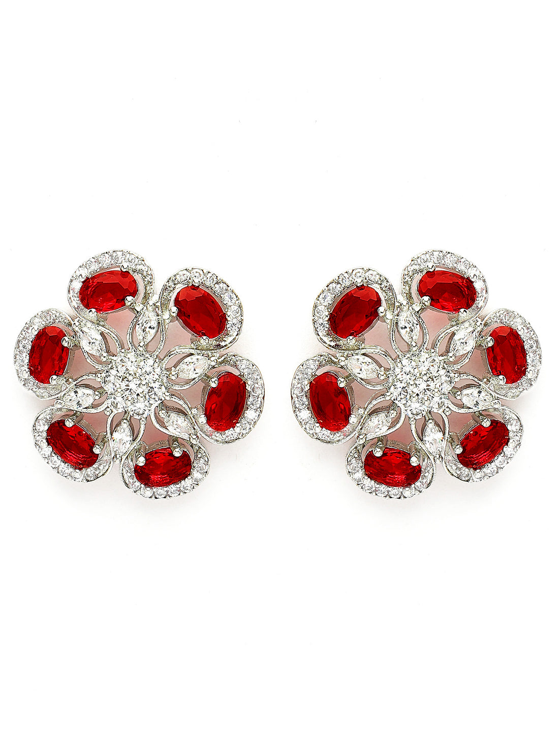 Karatcart Elegant Floral Design Red American Diamond Stud Earrings for Women