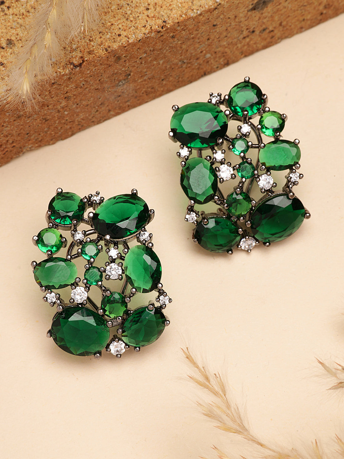 Karatcart Glamorous Green American Diamond Stone Stud Earrings for Women