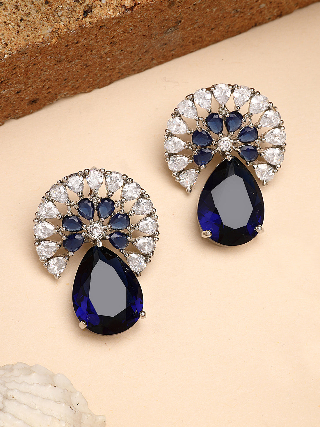 Karatcart Dazzling Blue American Diamond Stone Drop Earrings for Women