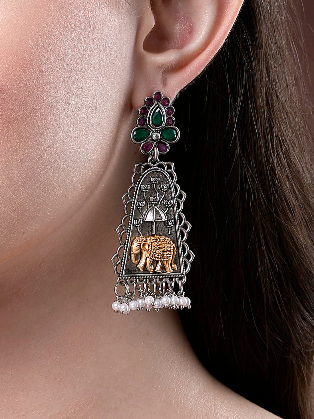 Karatcart Oxidised Silver Elephant Design Drop Earrings for Women