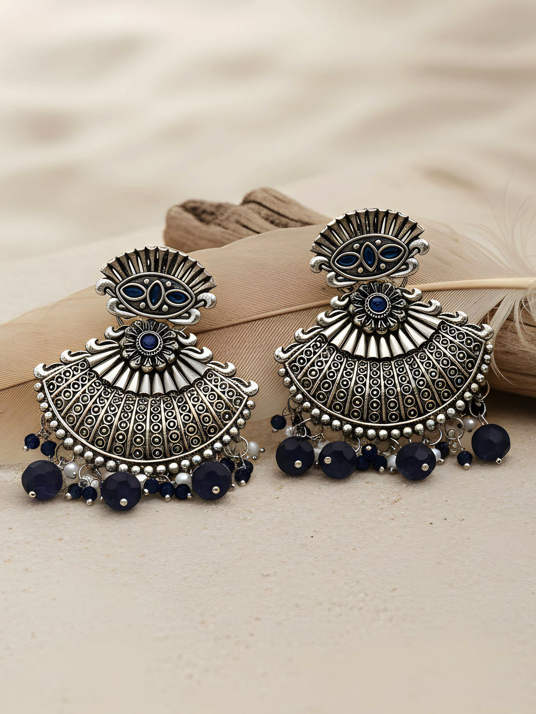 Karatcart Oxidised Silver Blue Beads and Stone Studded Dangler Earring for Women