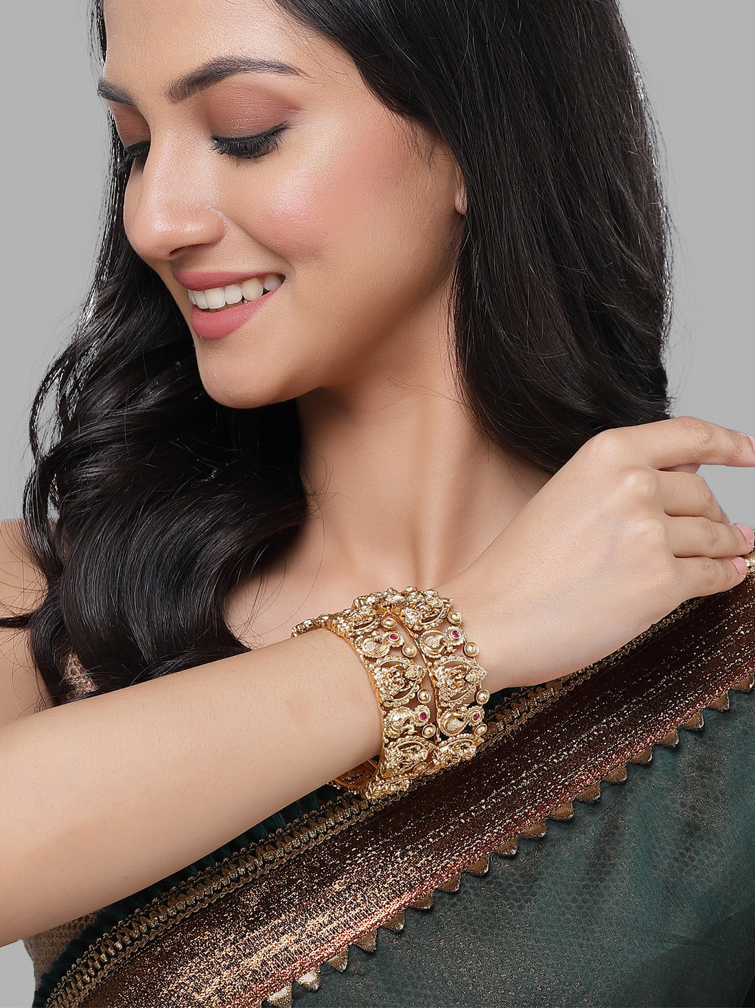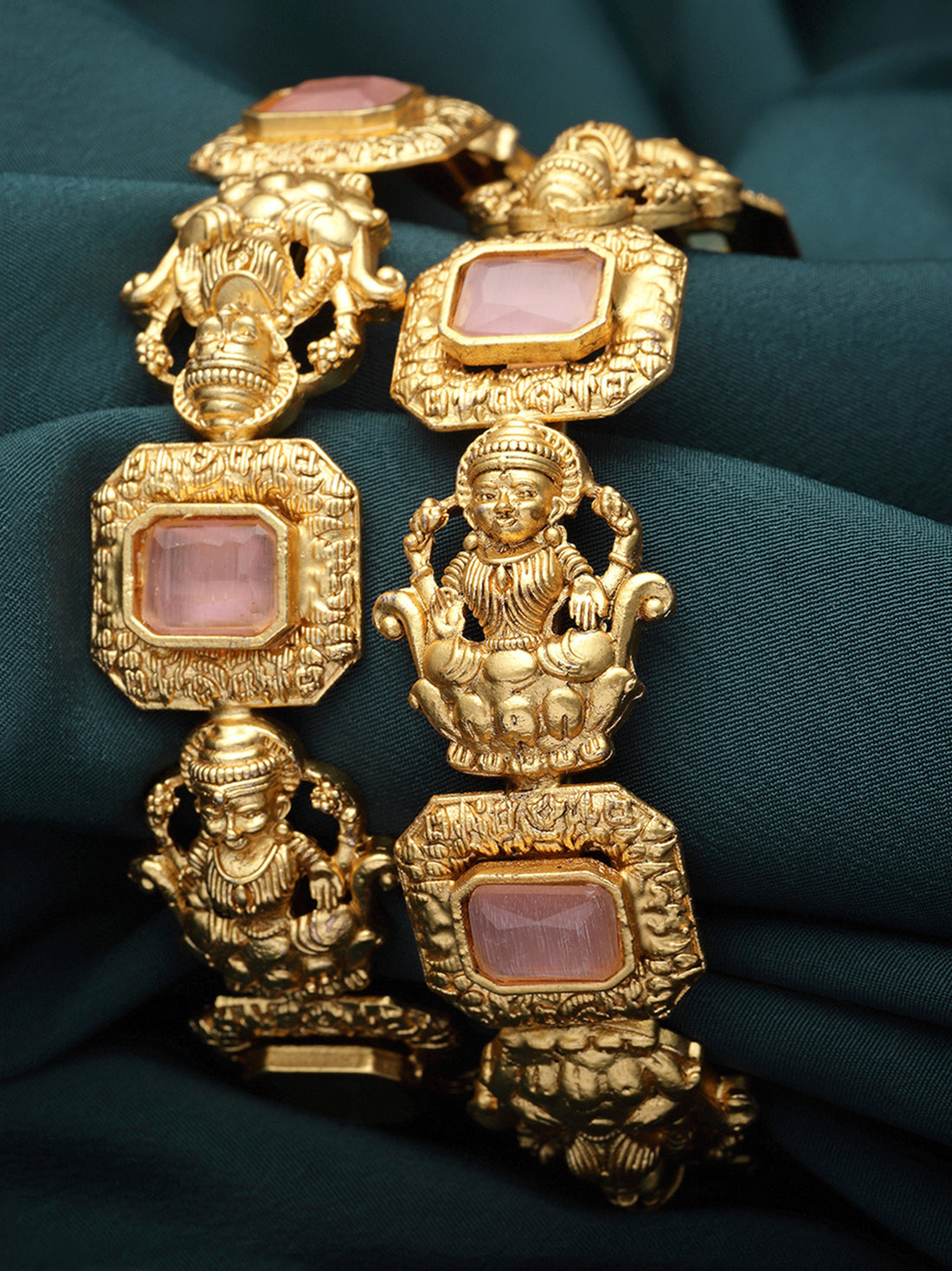 Karatcart Gold Plated Set of 2 Laxmi Mata and Peacock Design Bangles for Women