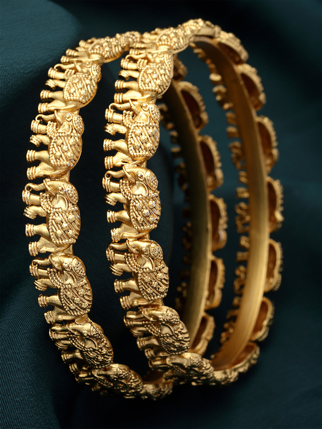 Karatcart Set of 2 Gold Plated Handi and Elephant Design Bangles for Women