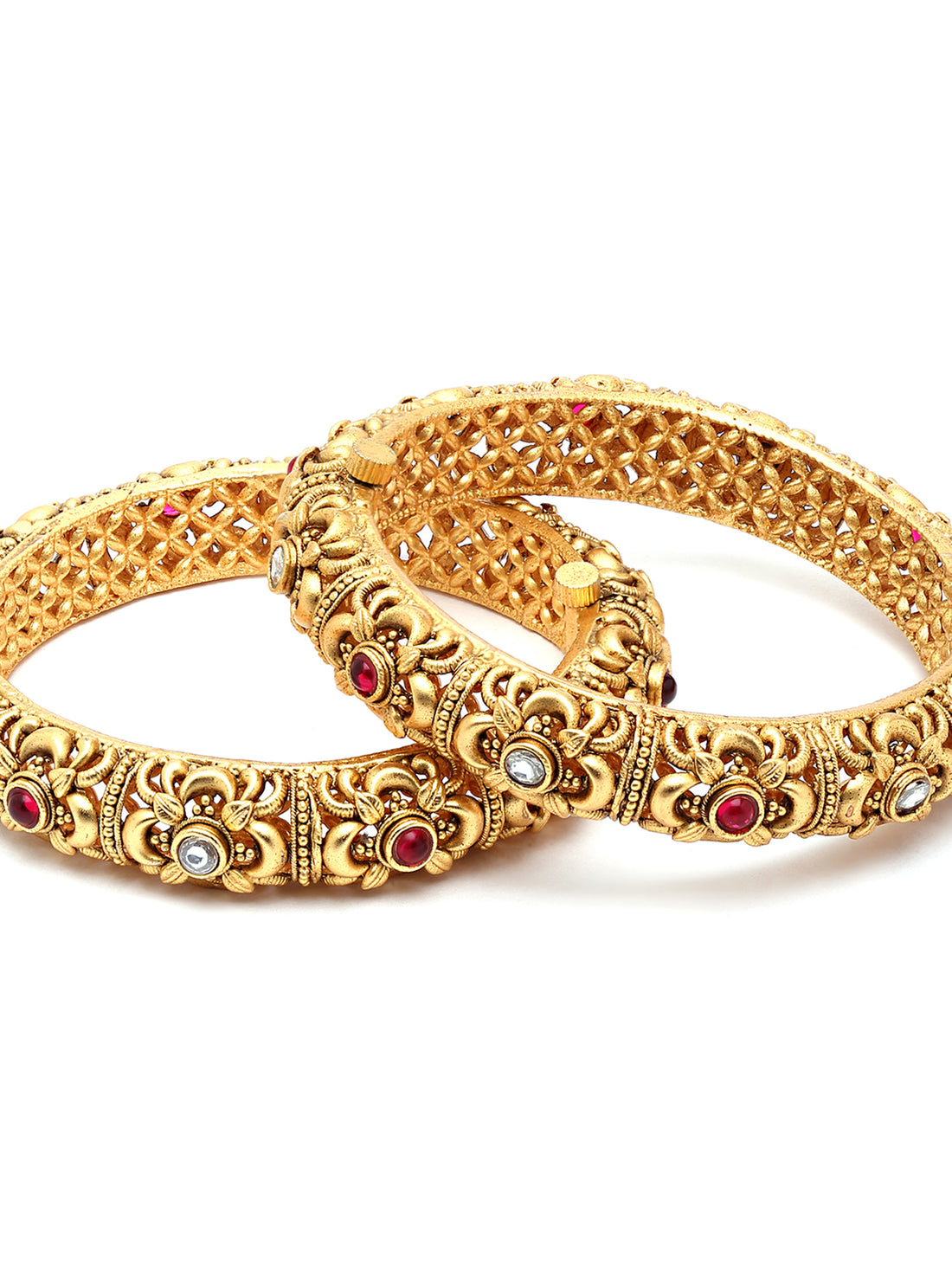Karatcart Set of 2 Antique Floral Rajwadi Gold Plated Temple Bangles for Women