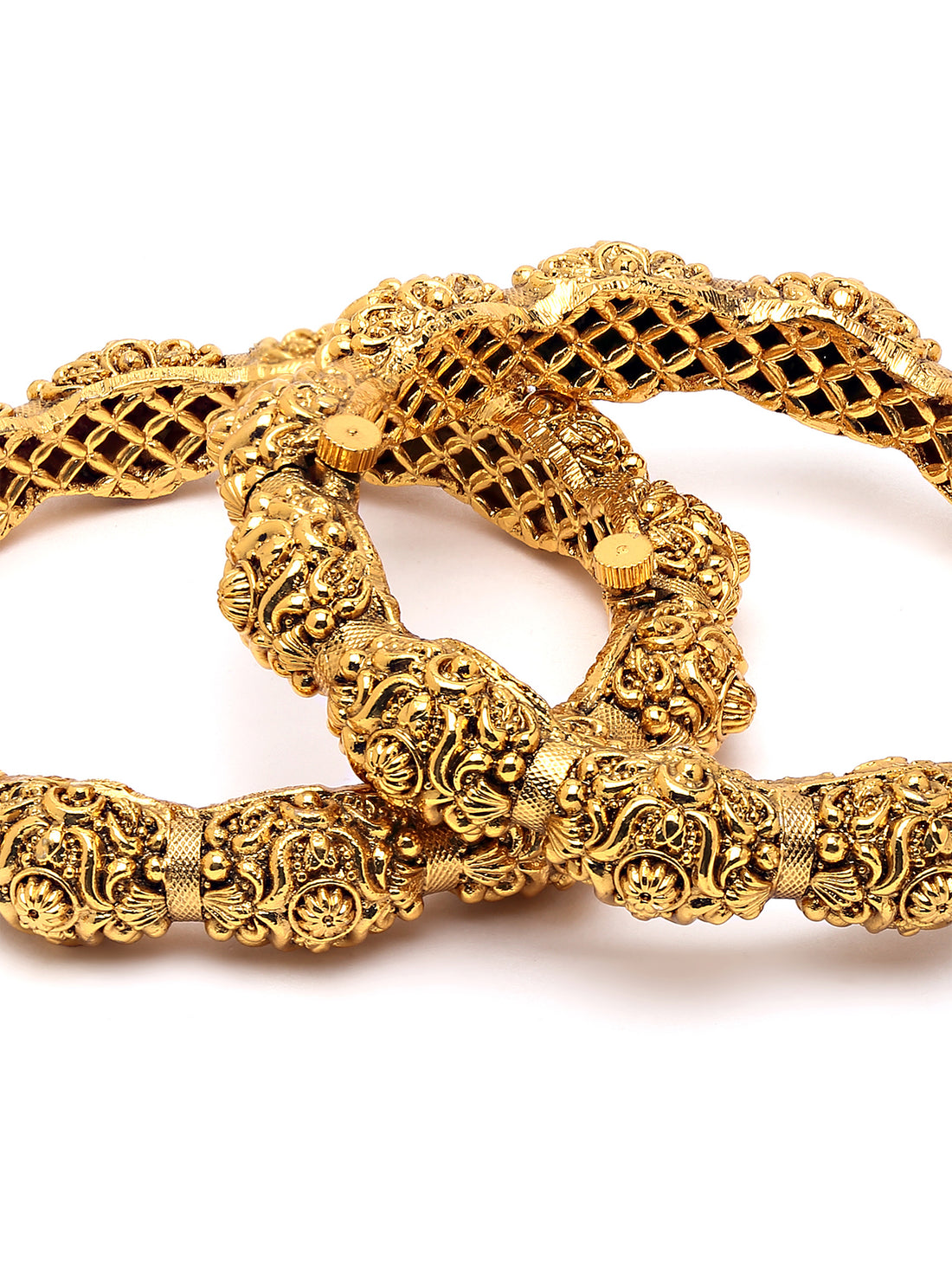 Karatcart Set of 2 Antique Temple Rajwadi Gold Plated Floral Bangles for Women