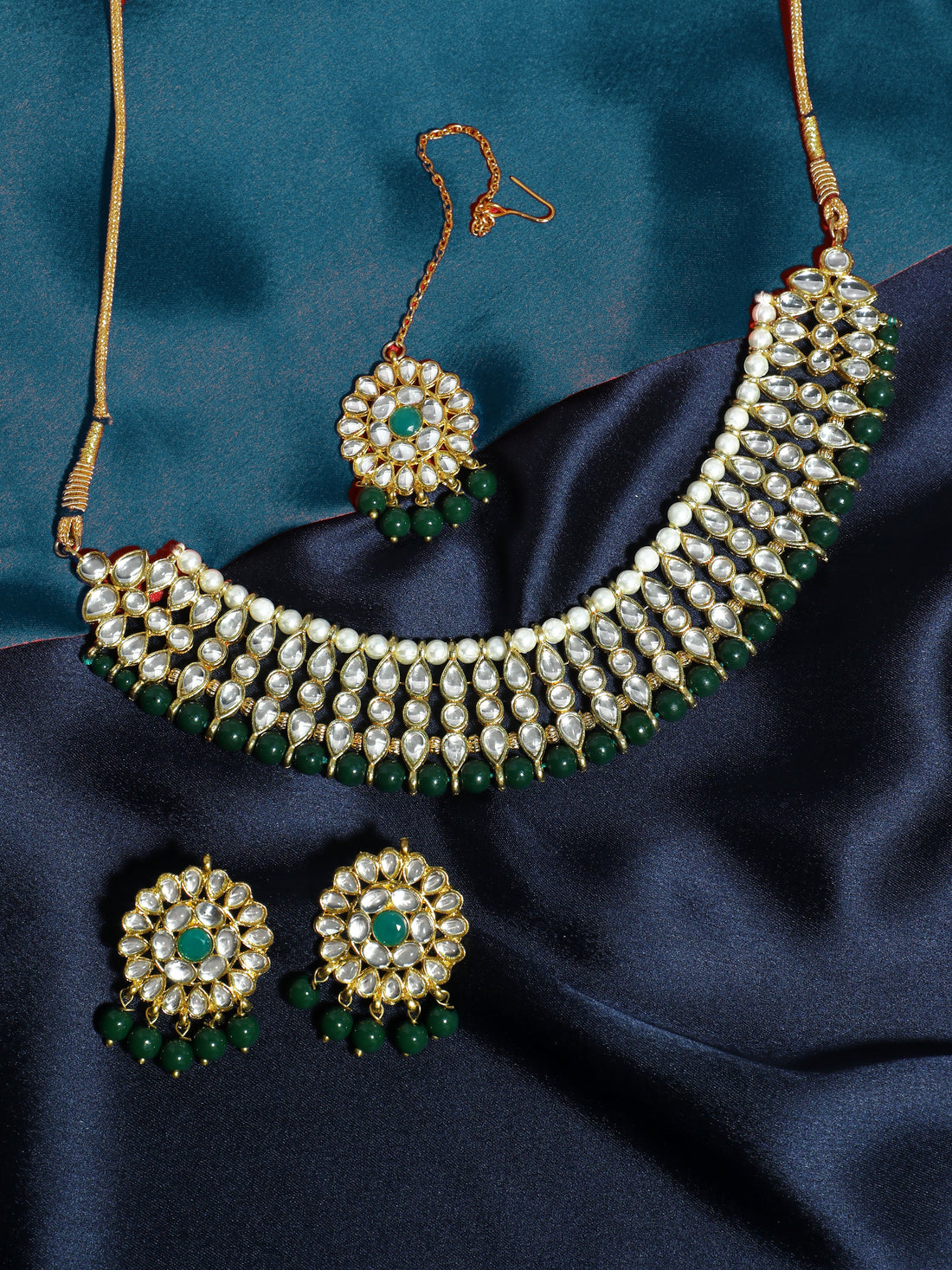 KARATCART Gold Plated Polki Choker Green Jewellery Set for Women