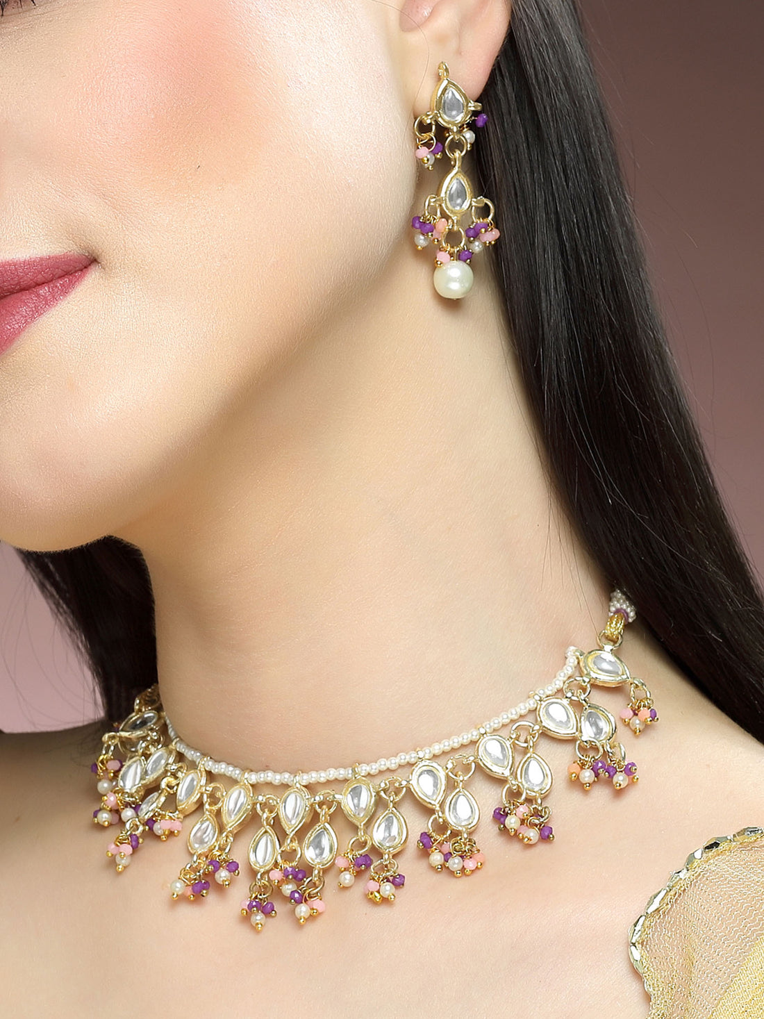 KARATCART Gold Plated Kundan Classic Purple and Pink Jewellery Set for Women