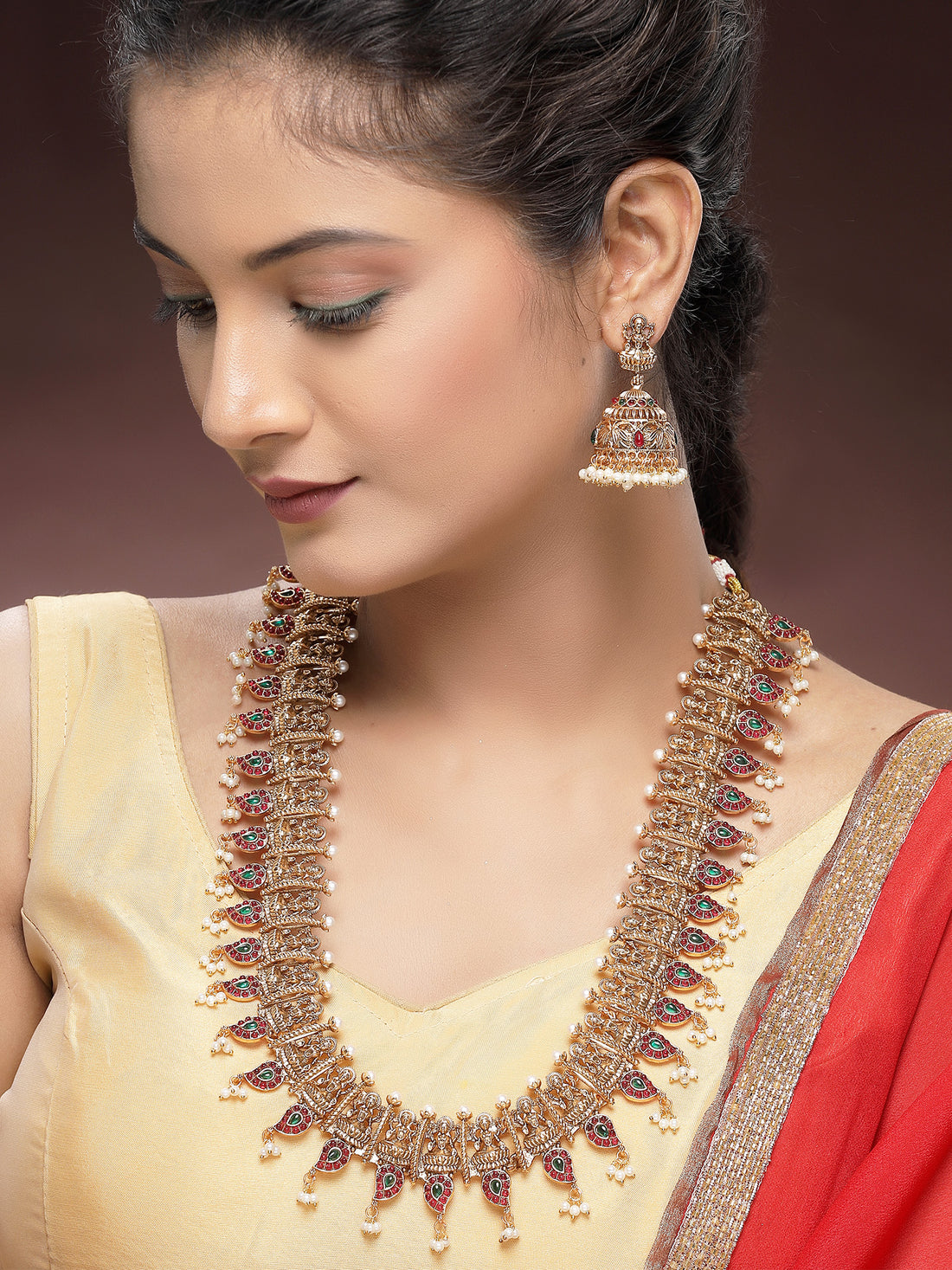 KARATCART South Indian Traditional Gold-Plated Laxmi Mata Rani Haar Temple Jewellery Set