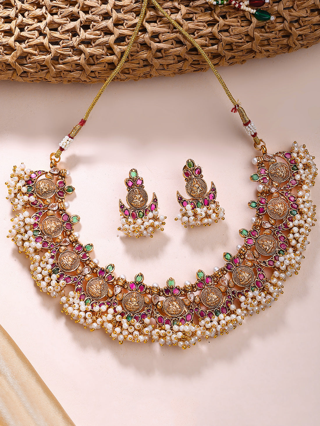Karatcart Classic Laxmi Mata Design Choker Temple Jewellery Set for Women