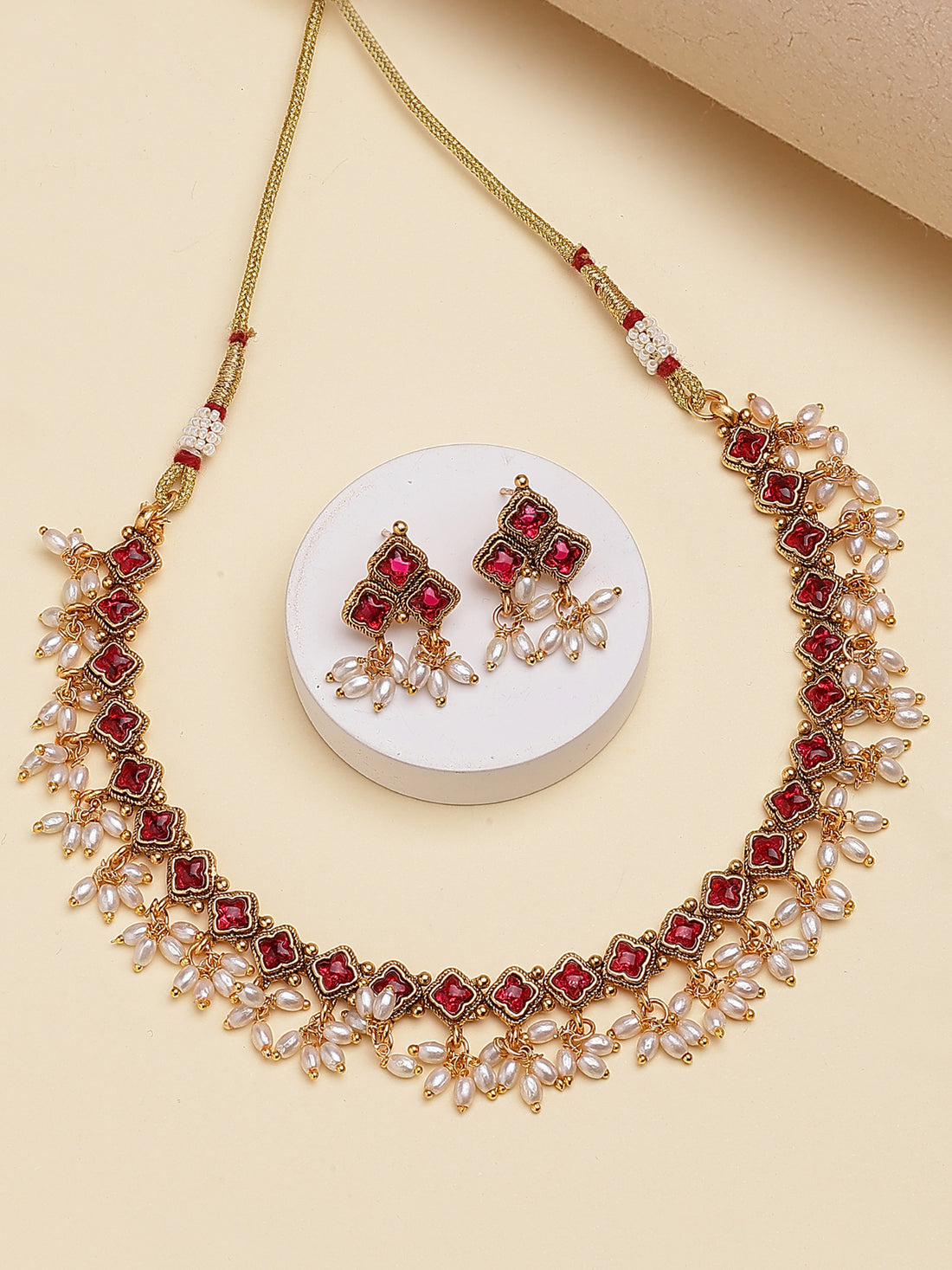 Karatcart Gold Plated Red Stone Studded Kundan Jewellery Set for Women