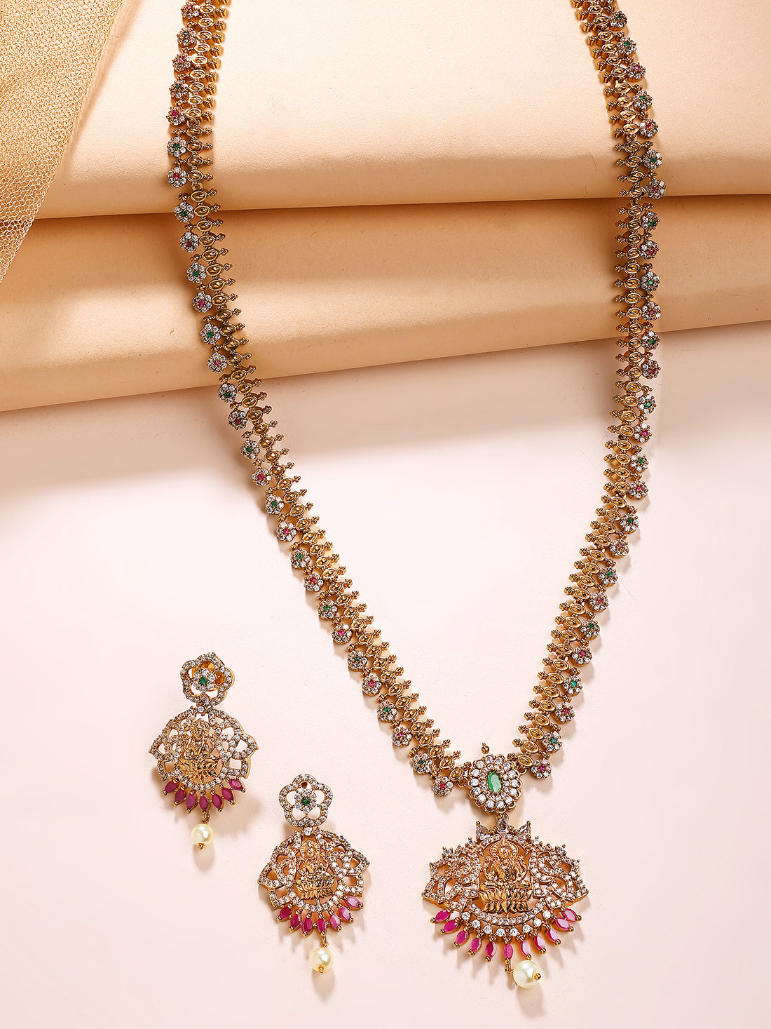 KARATCART Traditional Gold-Plated Laxmi Mata Rani Haar Temple Jewellery Set for Women