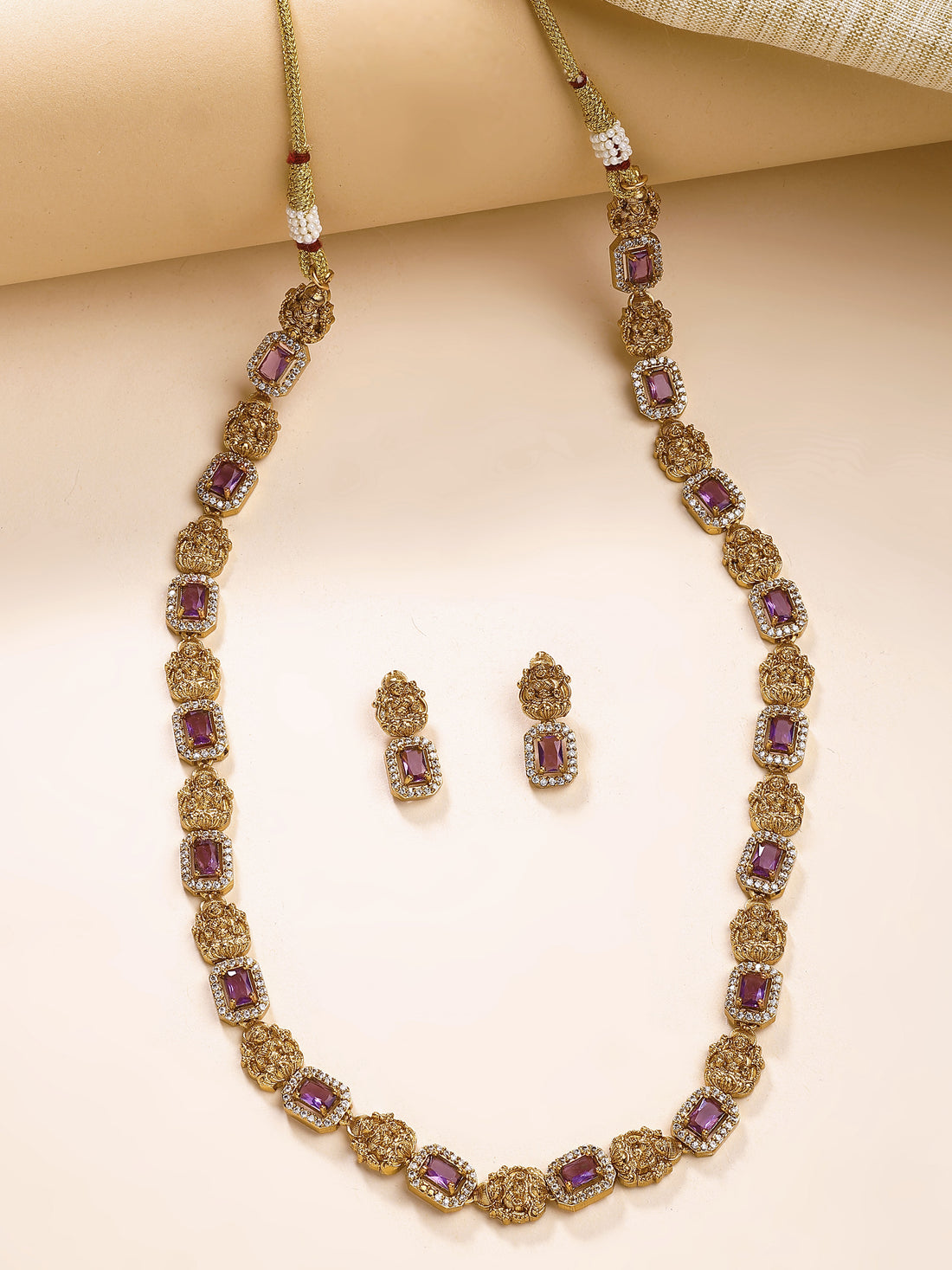 KARATCART Traditional Gold-Plated Purple Laxmi Mata Rani Haar Temple Jewellery Set for Women