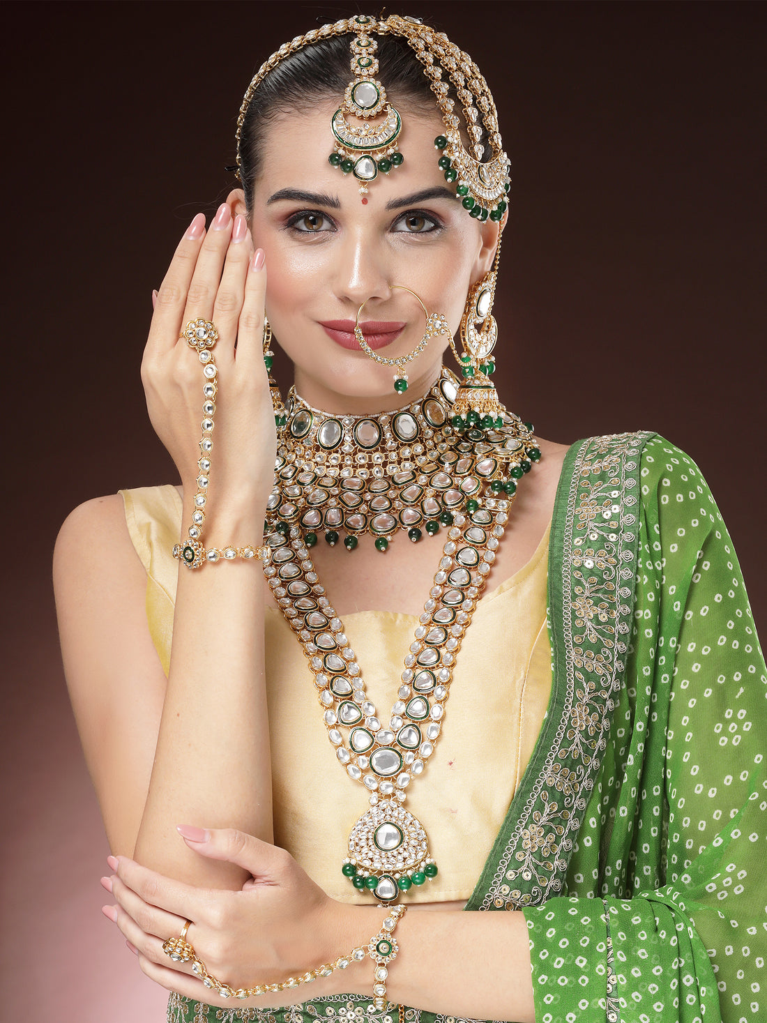 Karatcart Gold Plated Green Stone Ethnic Indian Traditional Kundan Dulhan Bridal Jewellery Set