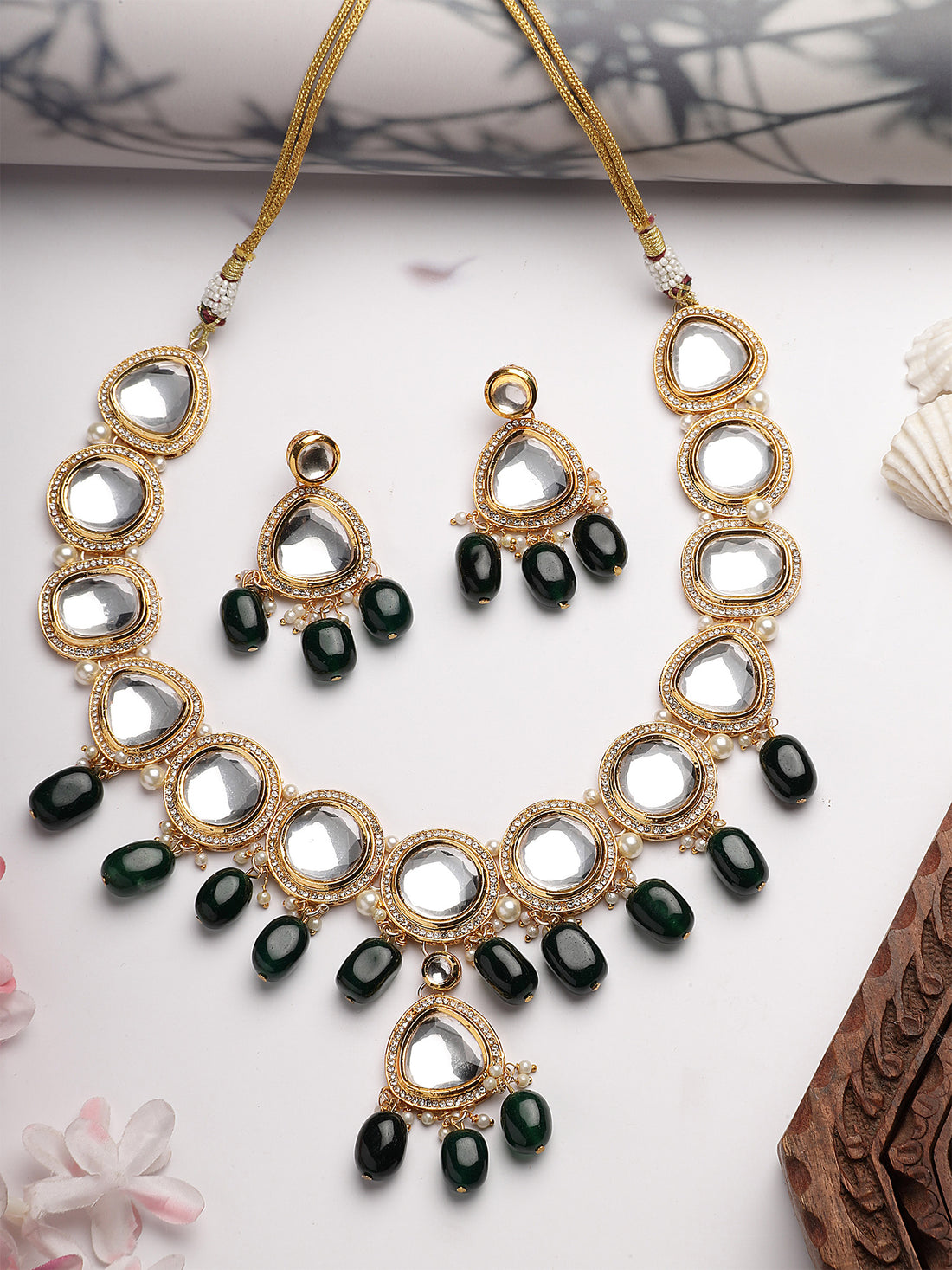 Karatcart Green Polki Kundan Classic Jewellery Set for Women