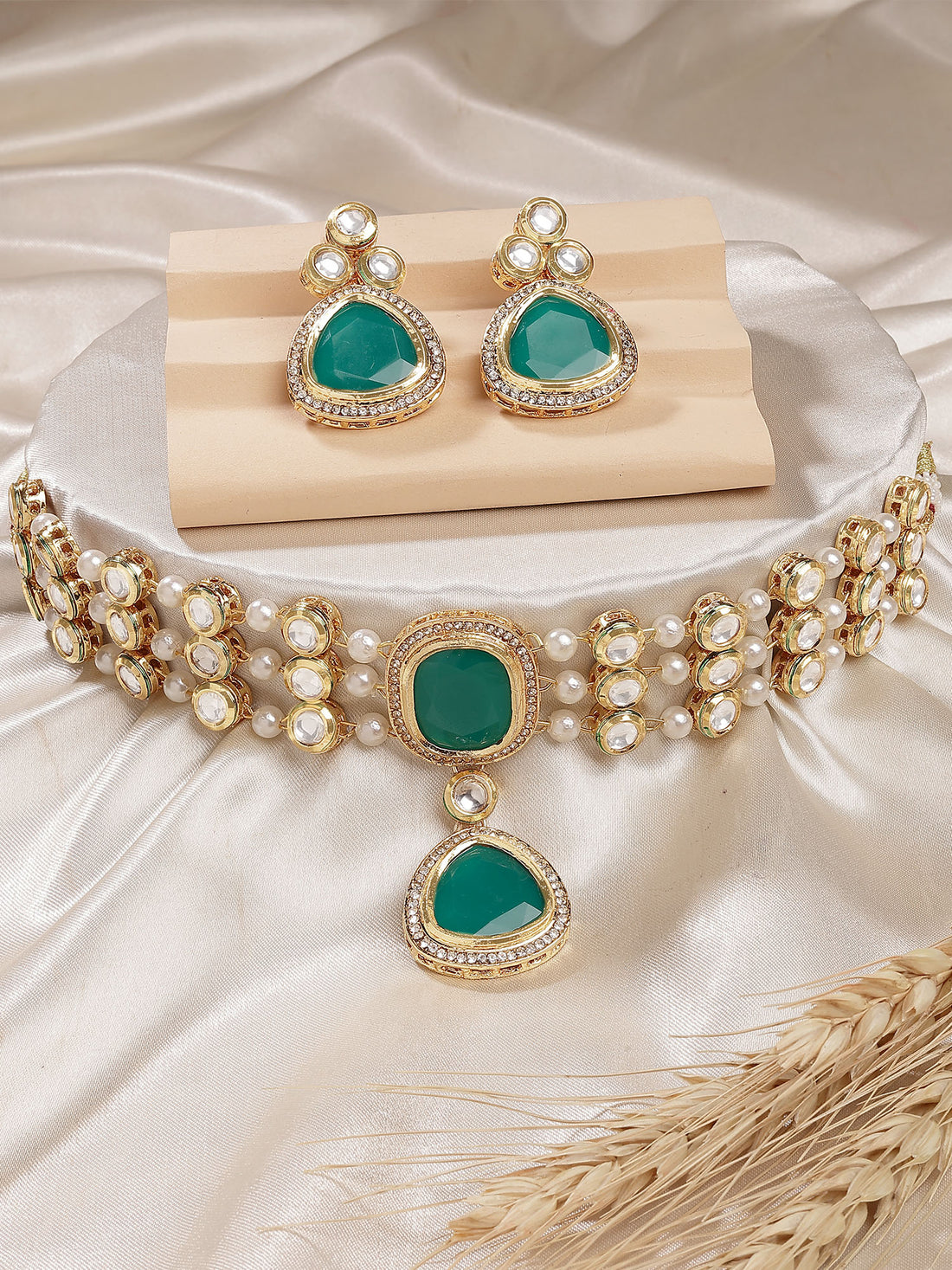Karatcart Green Polki Kundan Choker Necklace Set for Women