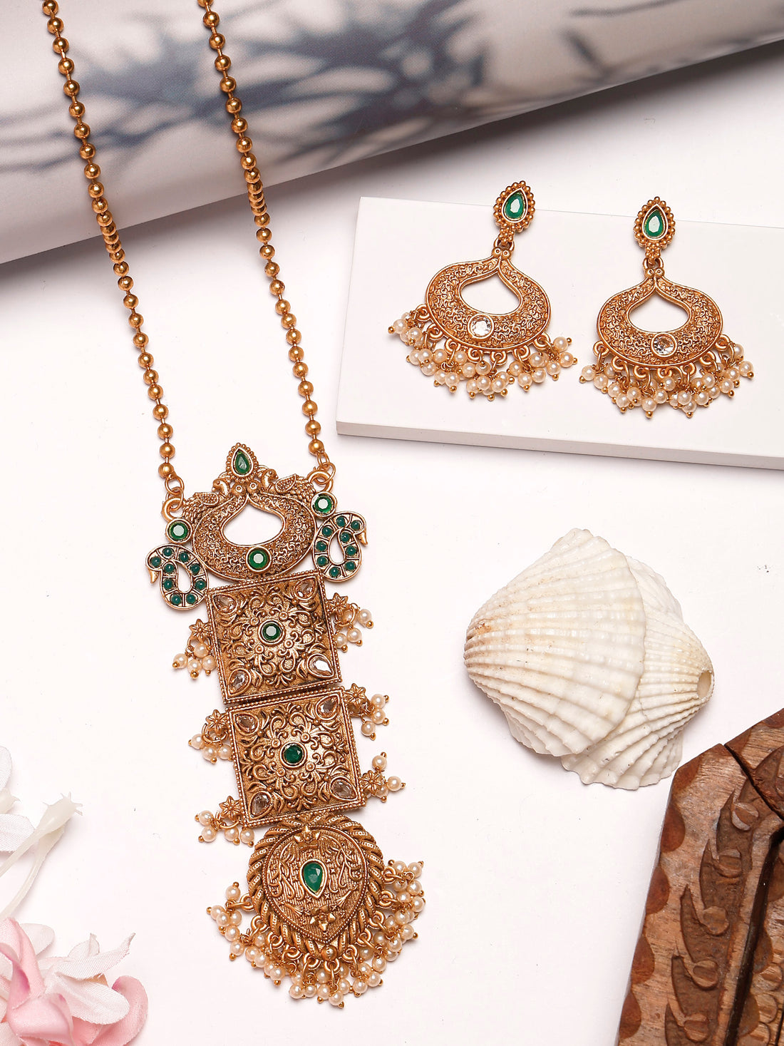 Karatcart Antique Gold Plated Green Stone Pendant Set for Women