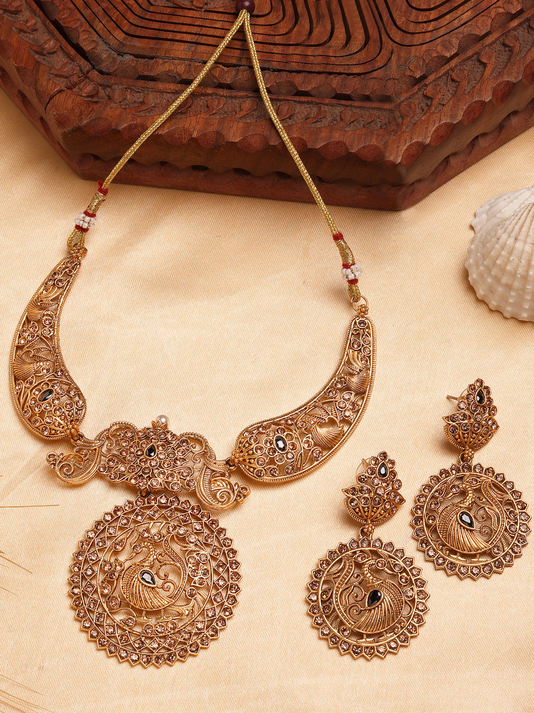 Karatcart Antique Gold Plated Stone Studded Necklace Set for Women