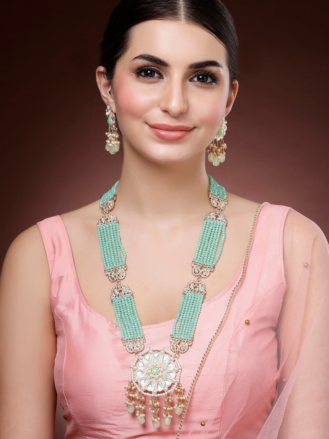 Karatcart Light Green Crystal Long Kundan Rani Haar Necklace Set for Women