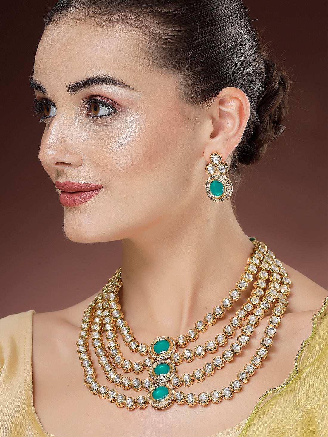 Karatcart Gold Plated Green Meena Ethnic Traditional Kundan Dulhan Bridal Jewellery Set