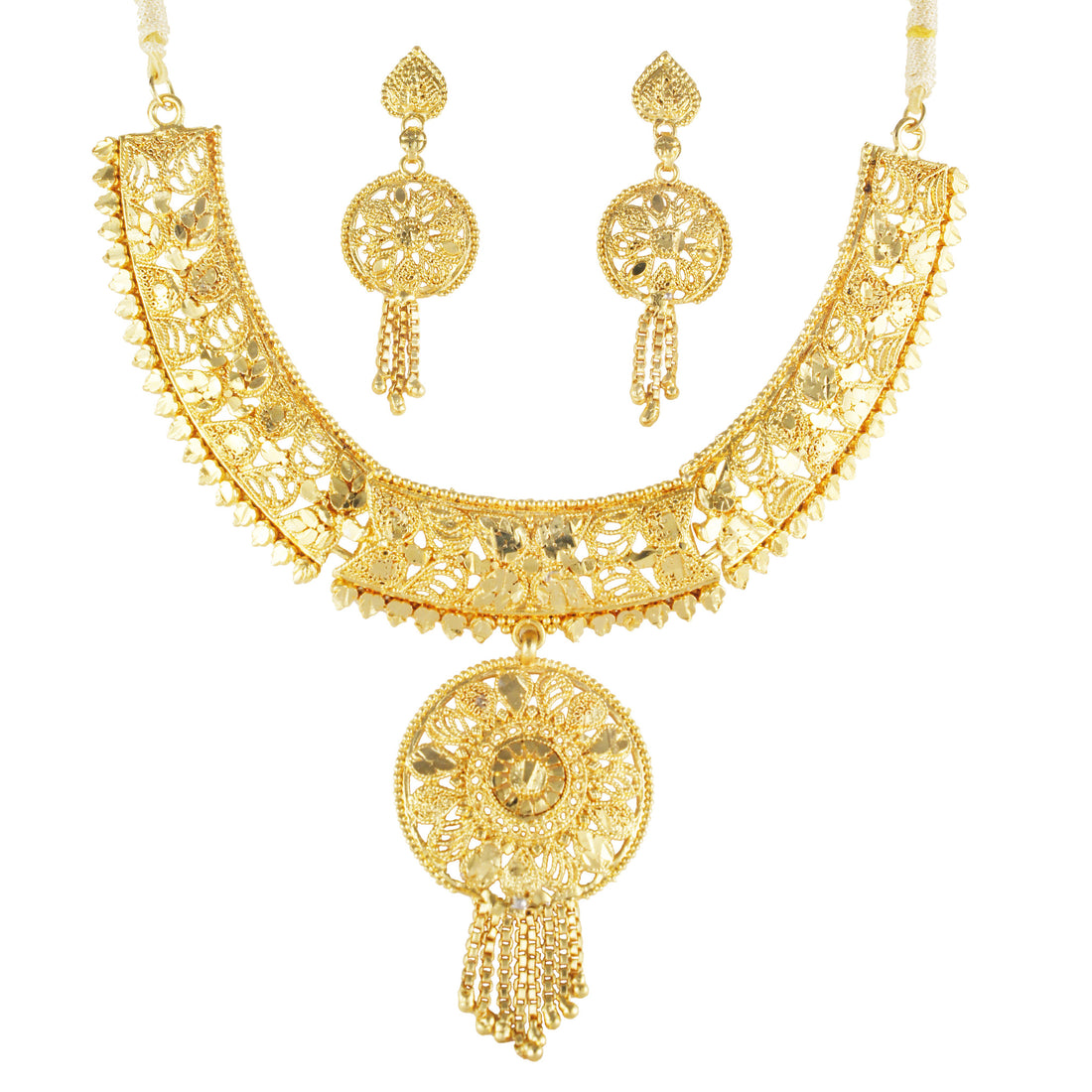 Karatcart Gold Plated Pearl Studded Floral Kundan Choker Neckalce Set. It is made with high-quality...