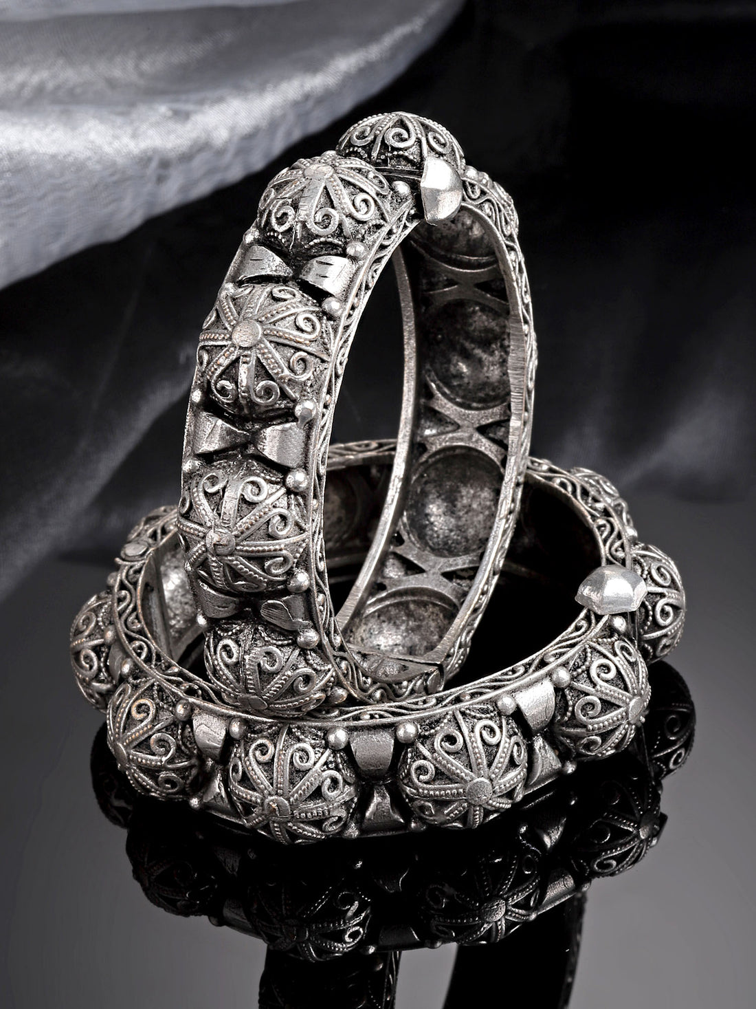 Karatcart Oxidised Silver Antique Dome Shape Openable Bangle for Women